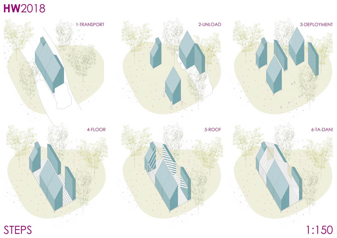 在可记录性和可复制性的条件下,可以记录和构造的所有内容。民宿的模块设计为永久性建筑元素。它们的便携性使他们能够在不同的位置和不同的配置中保留有限的时间。所选的配置将永久存储在用户的存储器中,并且在其使用状态下是临时的。