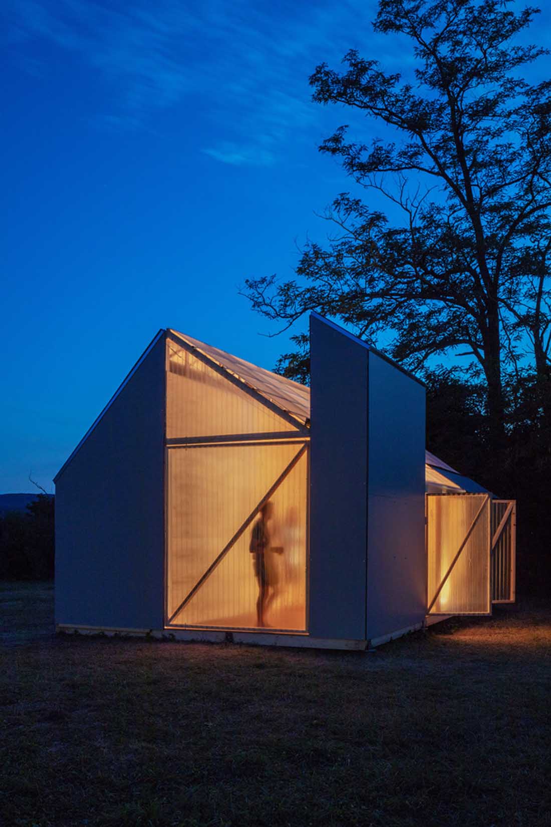 对于营员而言,他的身体与环境之间的关系至关重要。设计师设计的民宿主要功能定义为自主空间:休息、储存、烹饪、加热和洗浴。他们可以在房间内独立工作,也可以组成舒适的避难所。