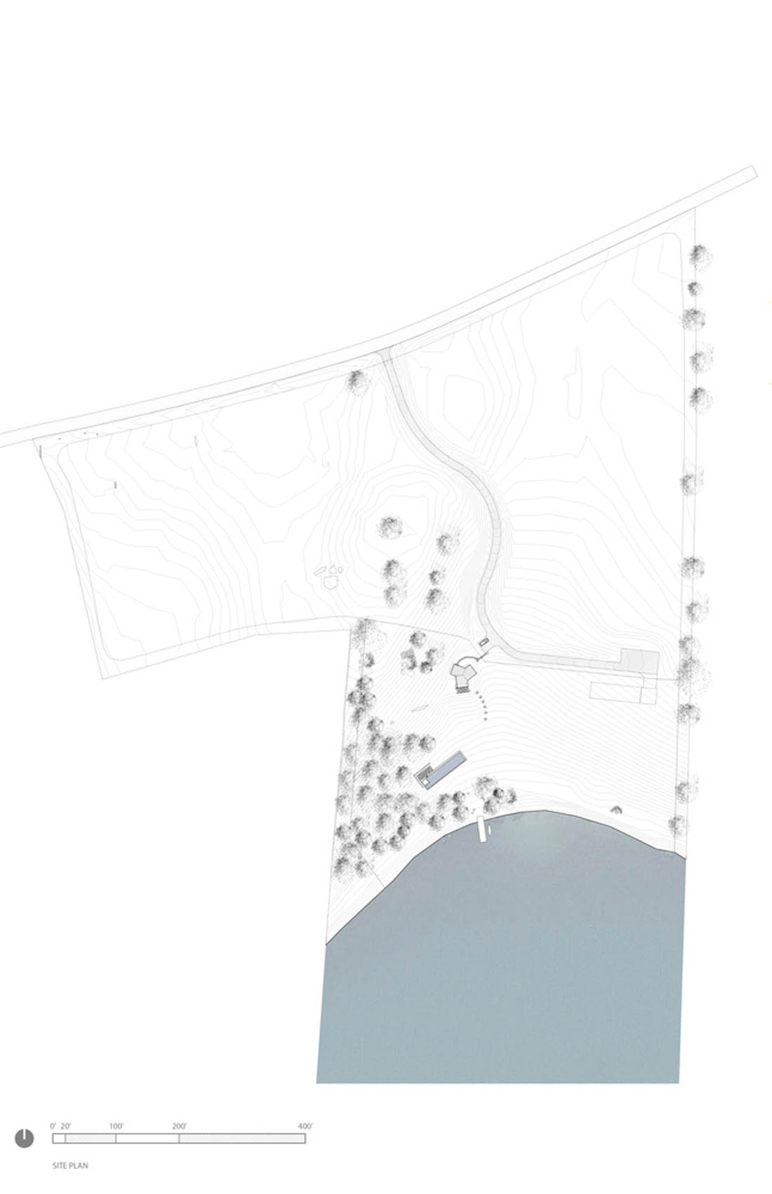 三居室的房屋、车间、游泳池、火坑和码头创建原理图设计,然后将它们进行布局以共享公用空间,将工作室放置在可以看到不被遮挡风景的地方。