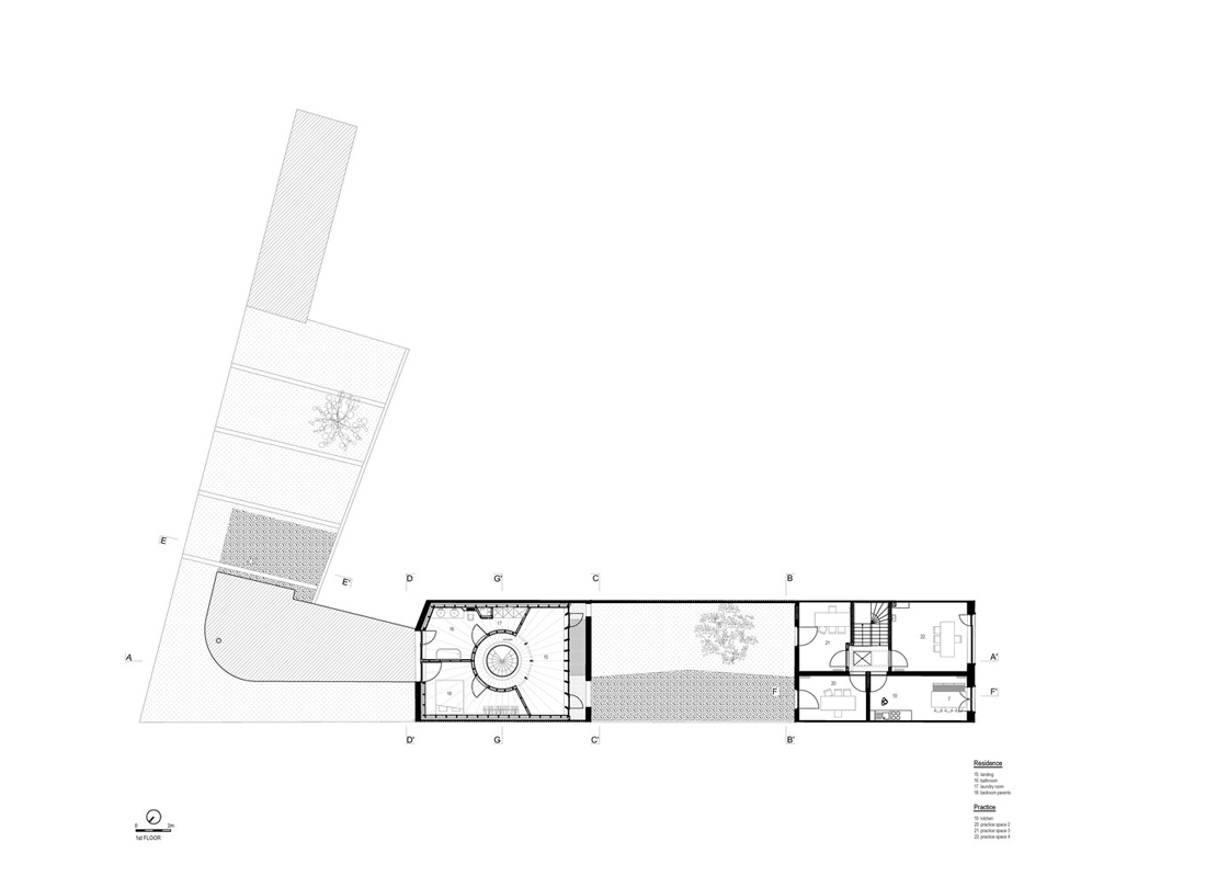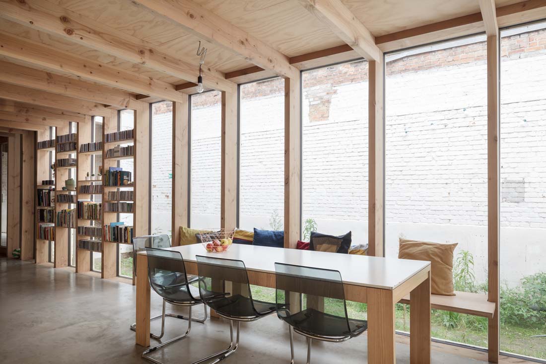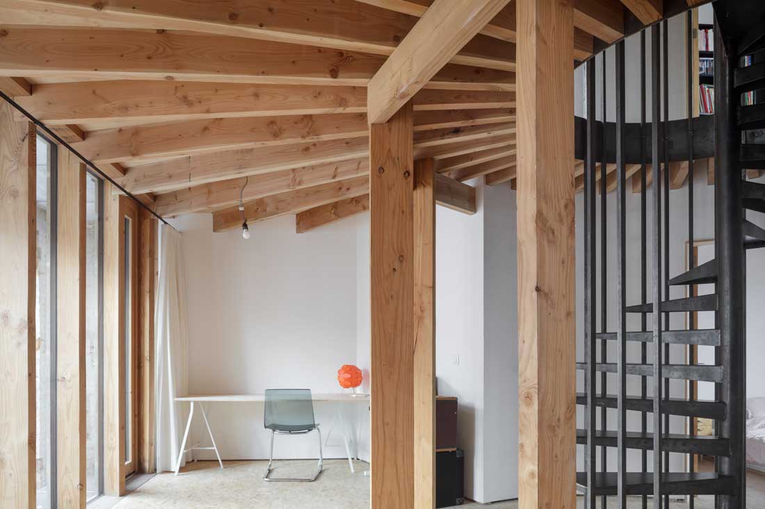 像蜗牛壳一样,新的木构架结构被安装在这些树桩中,从而为房屋提供了内部空间。科斯科和木结构房屋之间的中间空间在内部和外部之间建立了新的关系,有助于在地块上组织程序,并使科斯科的原砖从内部可见。