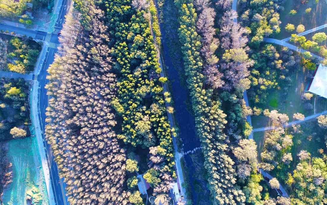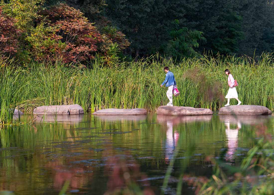▼设计保留了场地99%的原有树木,通过增植乡土树种,增加群落景观稳定性