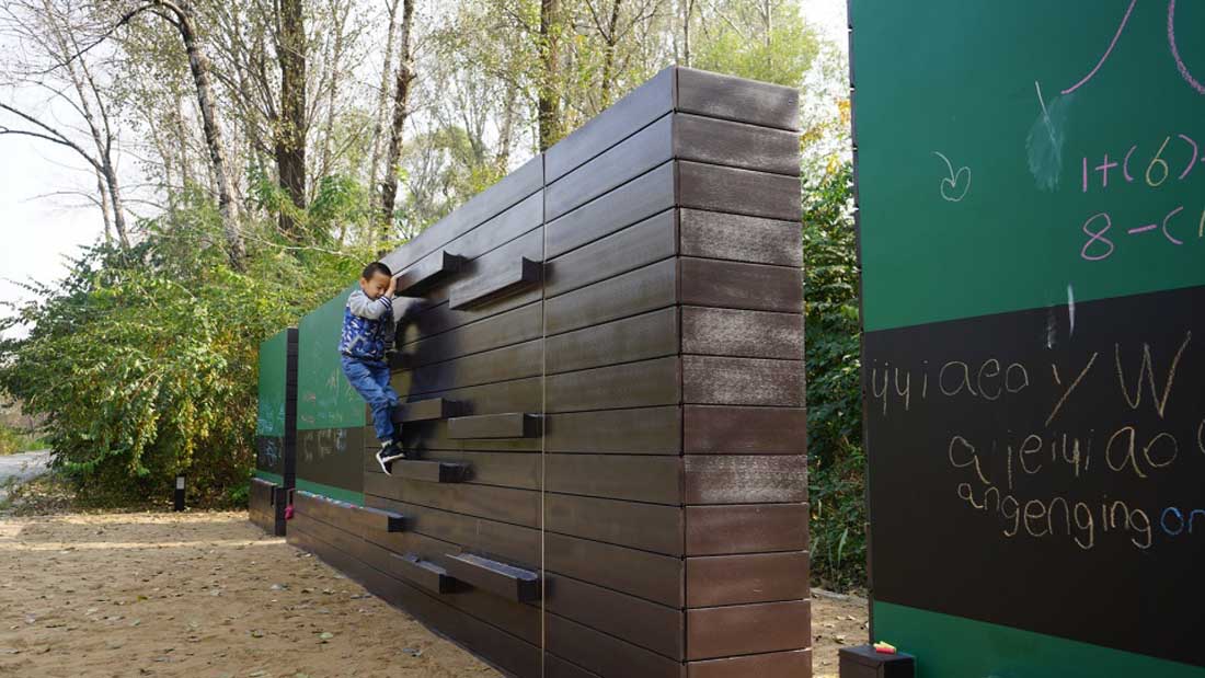 ▼兼具攀爬功能的手绘墙