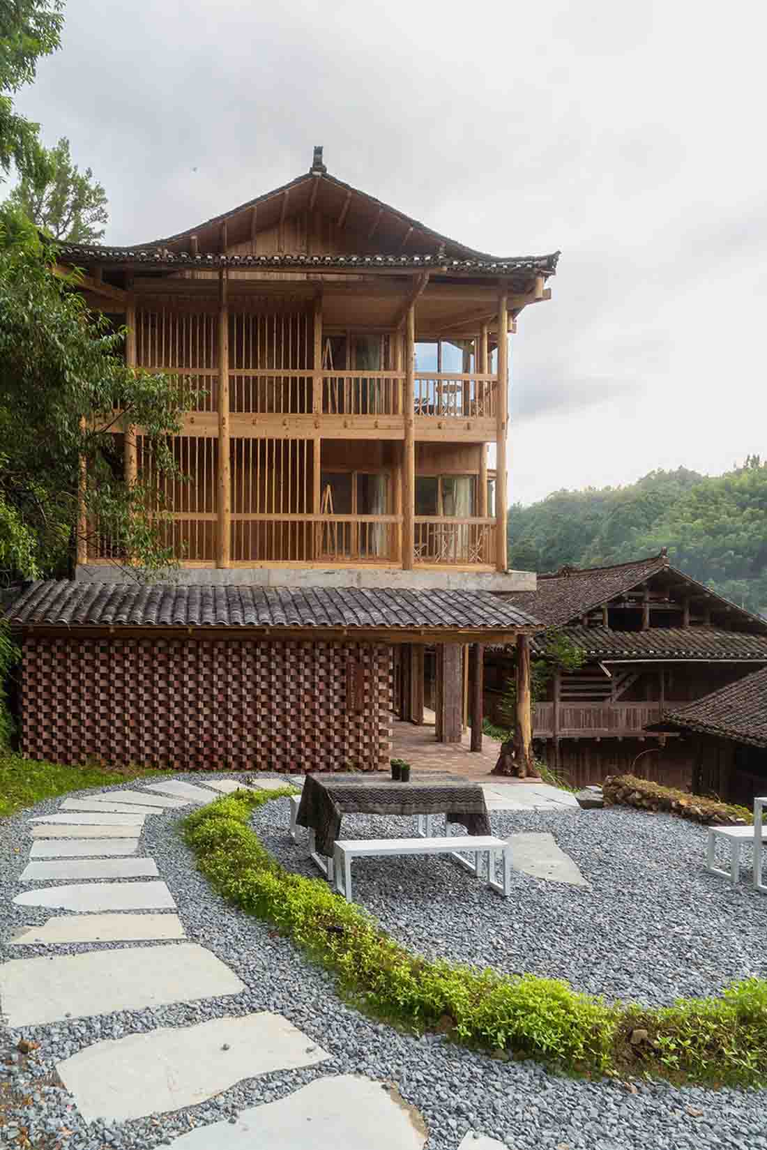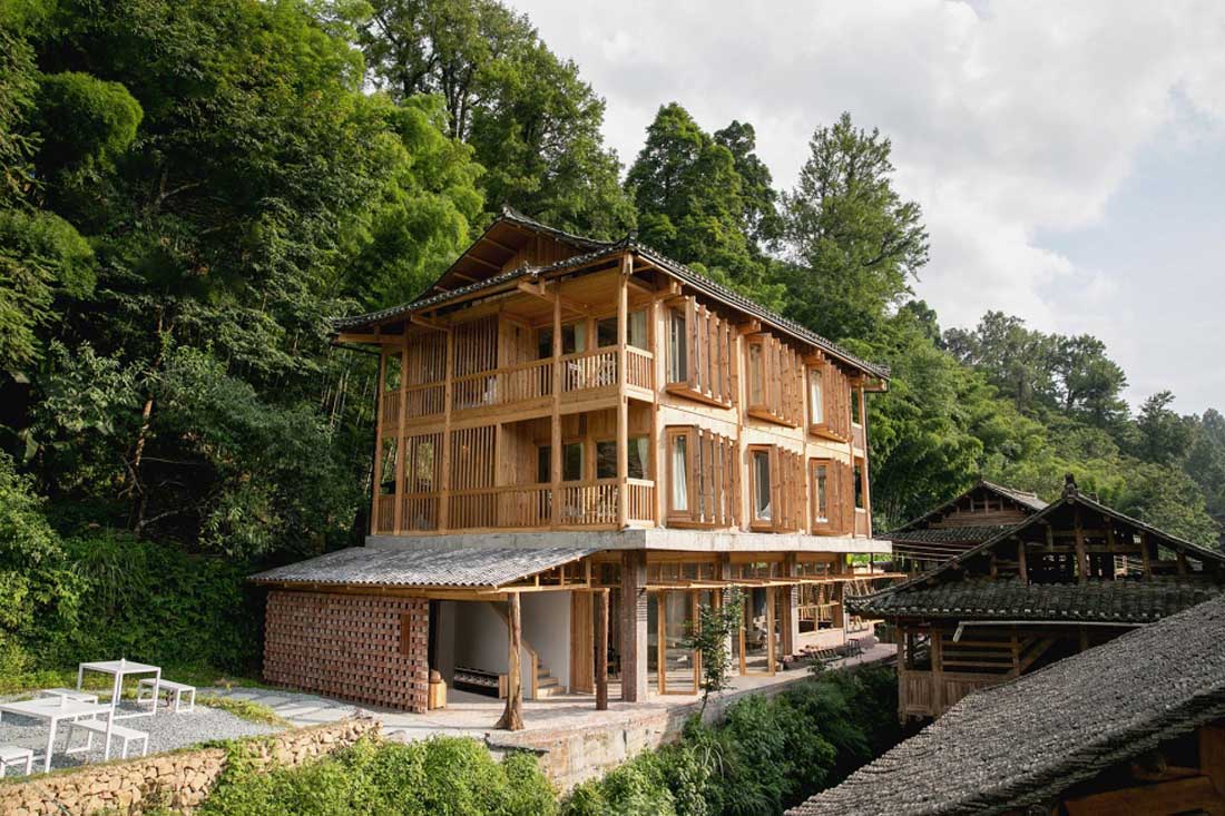 大利村是在贵州黔东南地区一个有着600年历史的侗寨,它基本上保持了传统文化的原样。古老的木制建筑、河流和井,以及梯田,都反映了旧生活方式的和谐。”井上民宿” 是由 ATLAS 工作室设计的一家全新精品酒店,旨在将自身定位在村庄的简单而简朴的生活方式中。项目的挑战在于找到方法,更新传统的建筑方法与当代设施和演变的设计,同时不失去大利村传统根源的完整性。