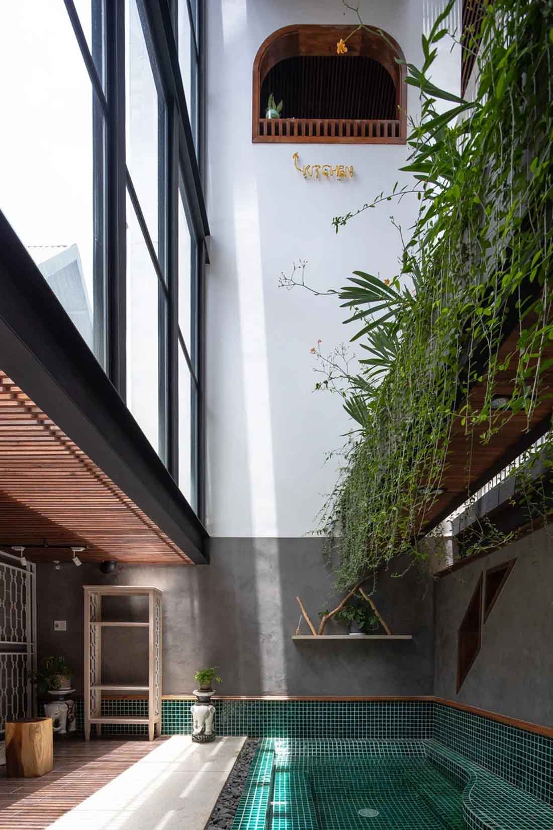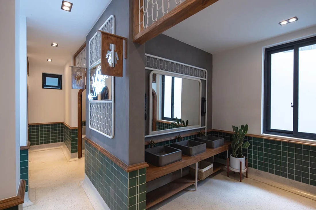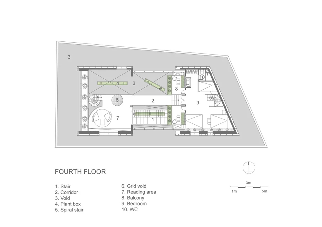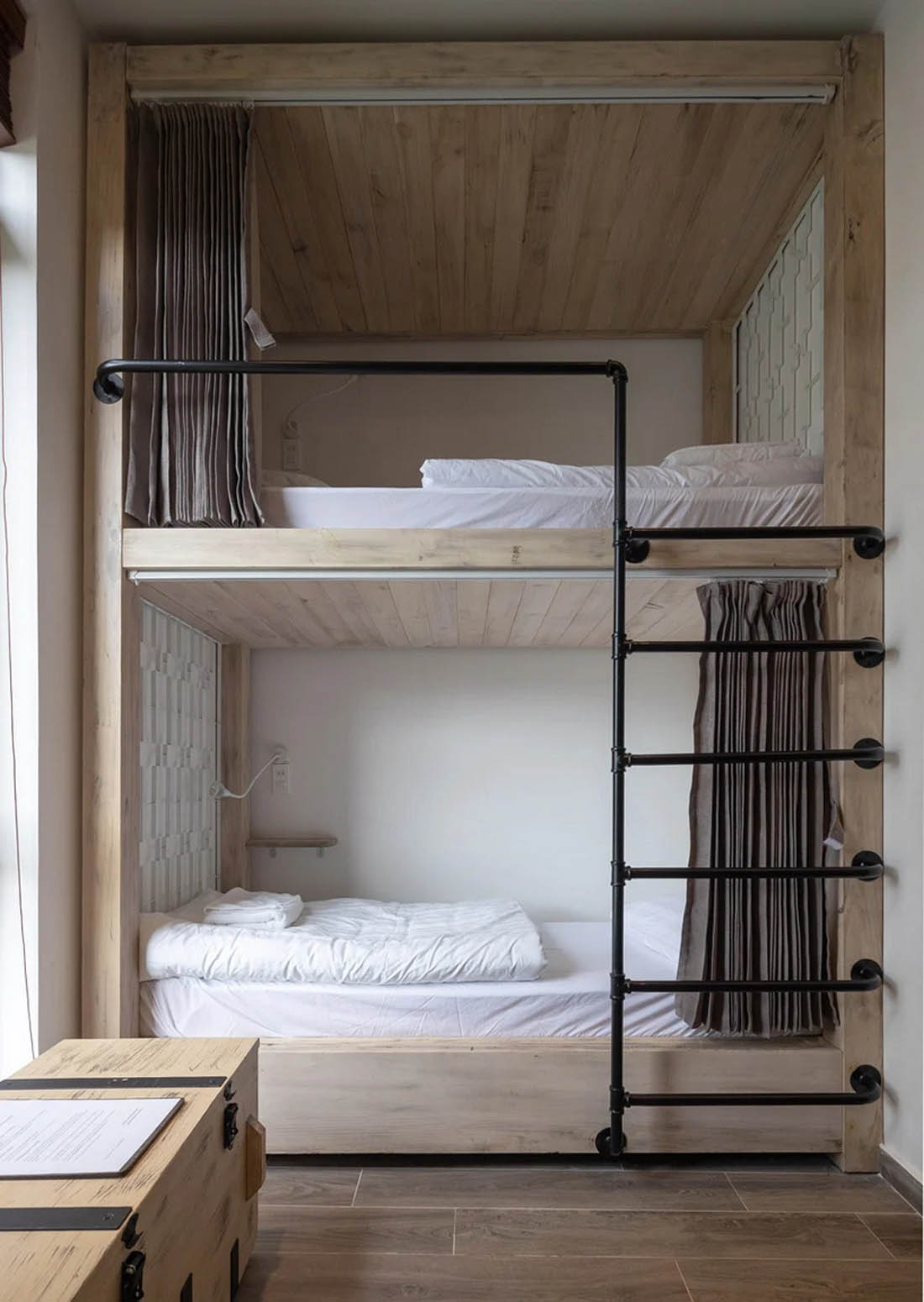 Le House在“午憩小居”外部包裹了一层CNC切割且设计独特的图案穿孔的钢板,钢板可用于抵抗该地区的多雨天气和高度潮湿。该建筑坐落于一处斜坡上,两侧毗邻不同的地形,由此形成了相似却又各具特色的立面,立面之间通过玻璃和钢结构进行连接。当夜幕降临,室内的灯光透过旅馆的穿孔表皮,将其变成一座明亮的灯笼。