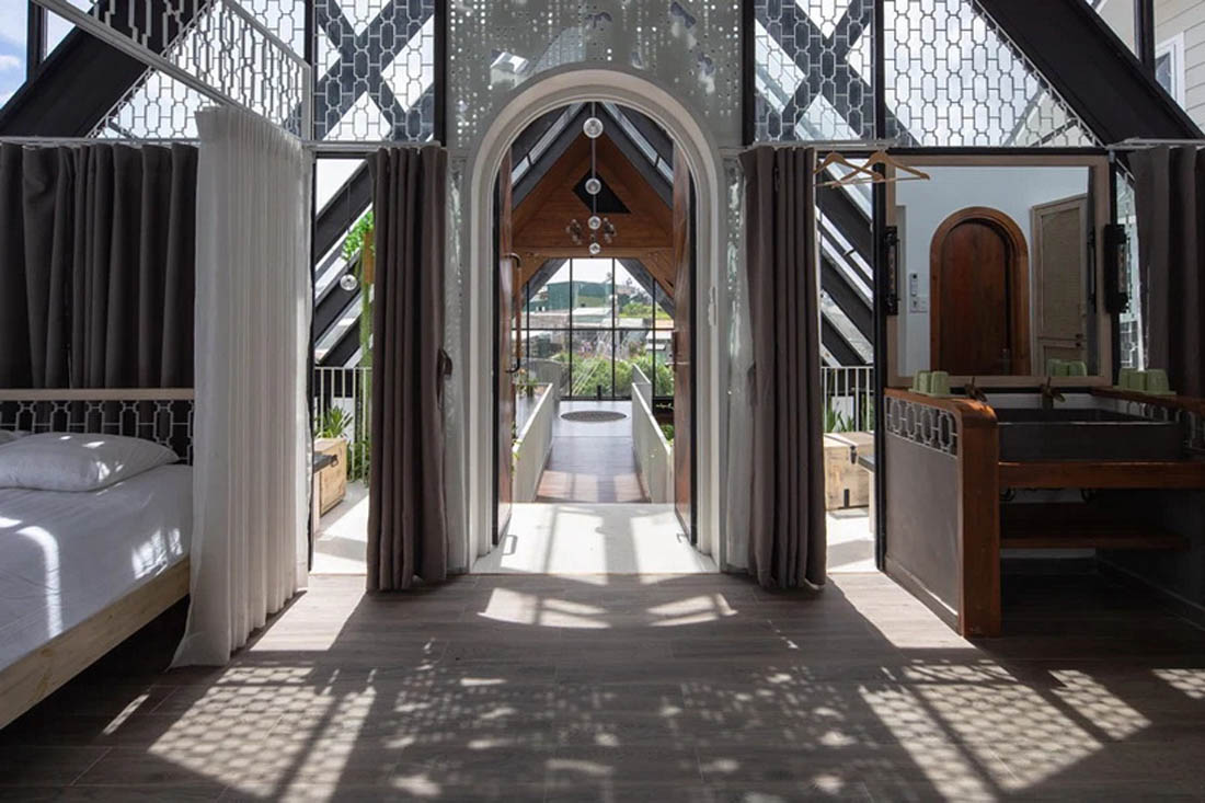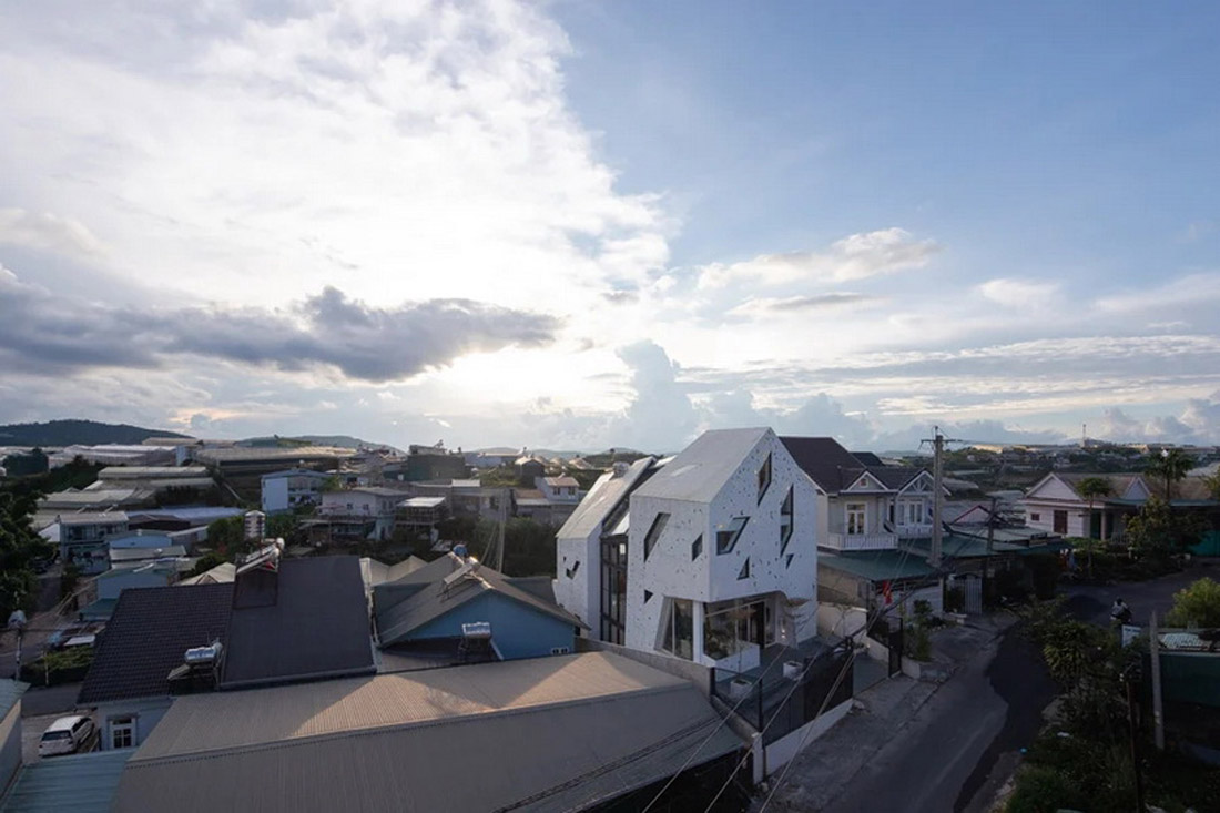 越南的建筑工作室Le House在“午憩小居”外部覆以穿孔钢板,将其打造成一座夜幕下的发光灯笼。这座小型旅馆坐落于大叻市(Da Lat City)的一条狭窄小巷深处的高坡上,白色的外观使其与周围环境形成鲜明的对比。旅馆内部共三层,外加一座阁楼。空间按照相互贯通的原则进行布局,在不同区域之间形成错综复杂的视线联系。