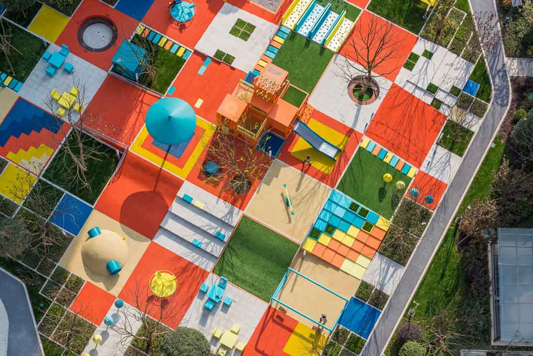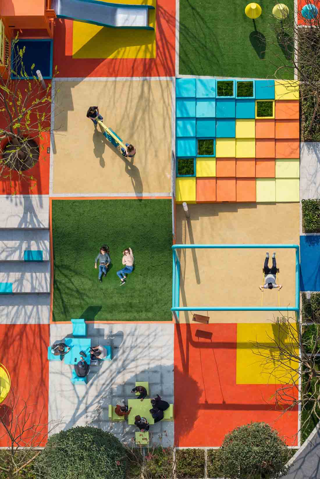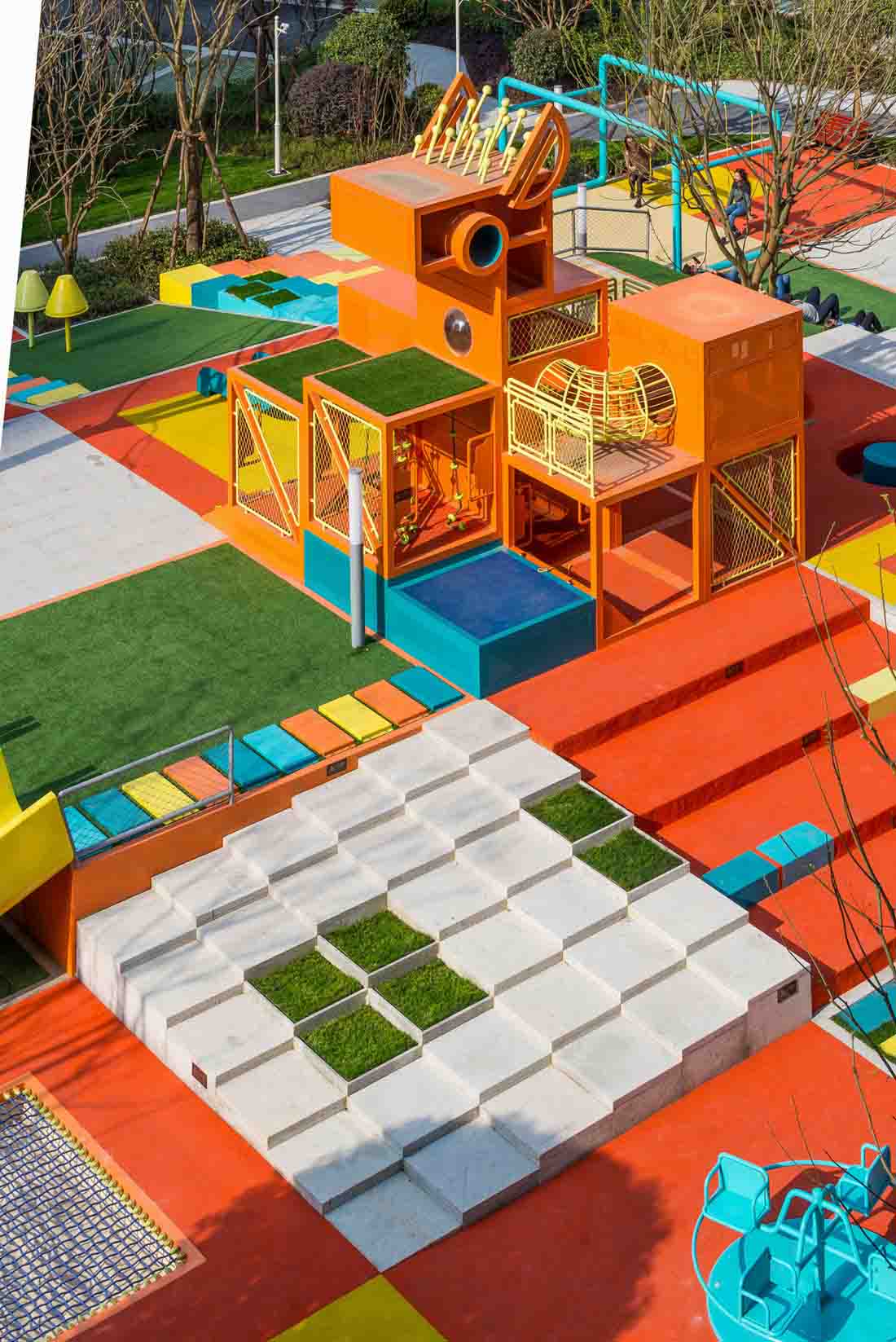 “PIXELAND像素乐园”是一个公共空间美化项目,它将不同的户外设施组合在一个整体空间中,如特色景观、儿童游乐设施、成人休闲设施等。