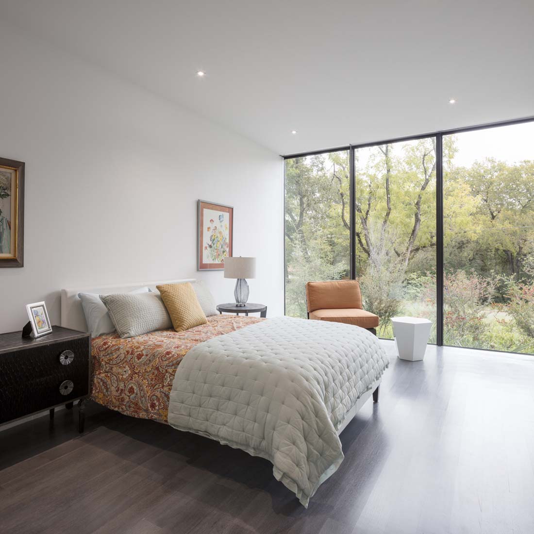 Winnwood住宅是一个新的4,600平方英尺的单层住宅,全新的生态设计使业主全年都能在室外景观中生活。房屋的四面都被大面积的景观包围,其中一面是由德州公园和野生动物及美国内政部管理的自然保护公园。