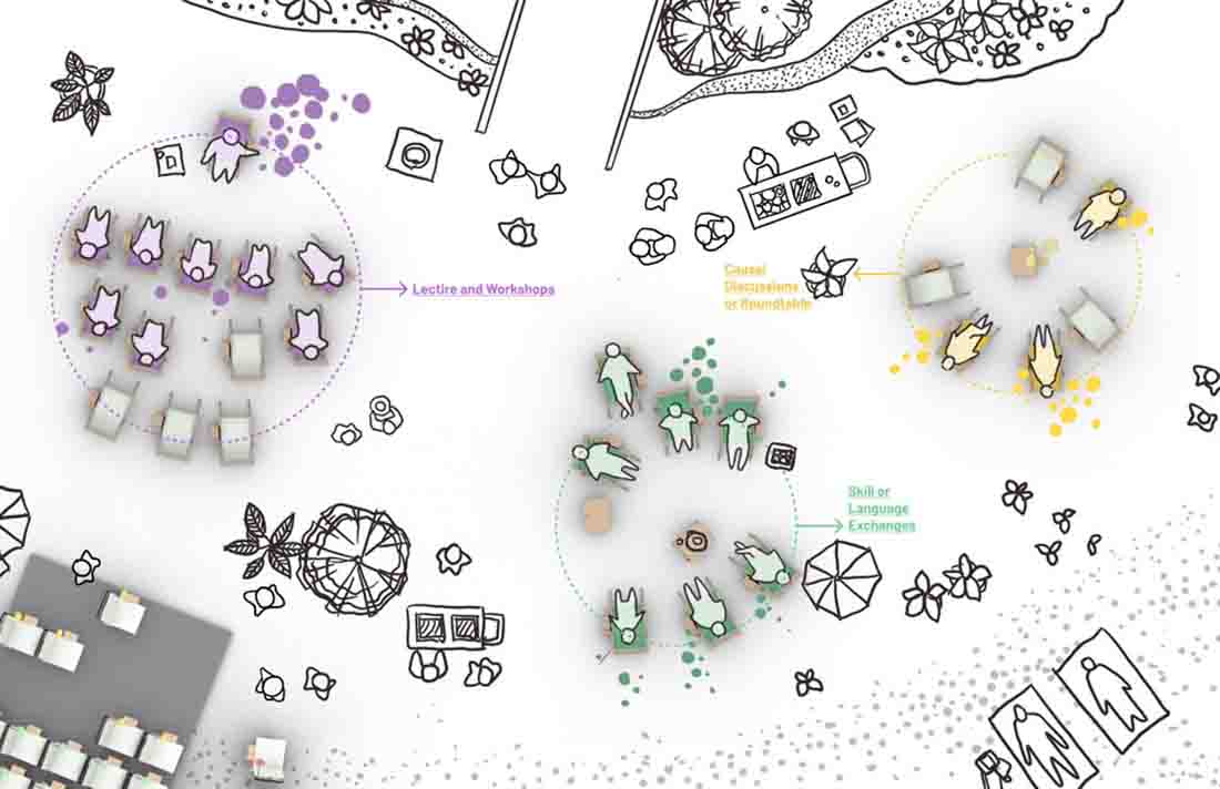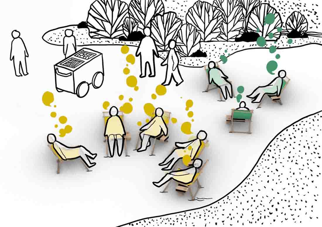 Fora充分利用了公园作为集市的作用,居民可以使用“物联网”(IoT)体系结构以及公园家具(例如椅子和小桌),彼此聚集在一起,进行对话和对话。