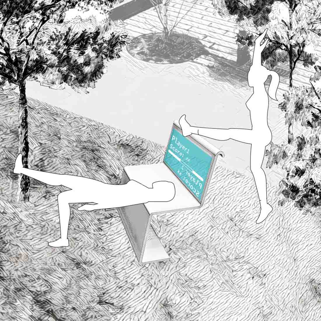 Activating Surface想象一个公园,其中的物理设备和交互式表面(例如全息图和灯光)促进了社交互动,运动和对公园空间的探索。