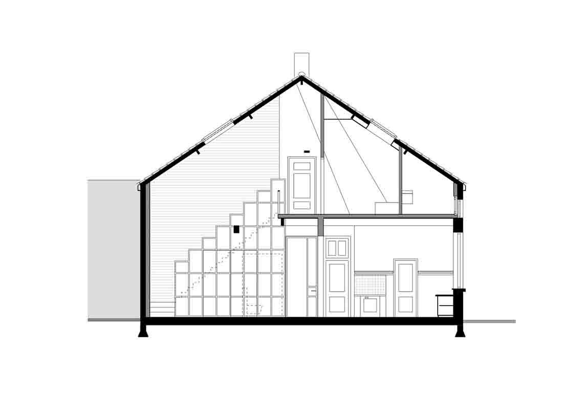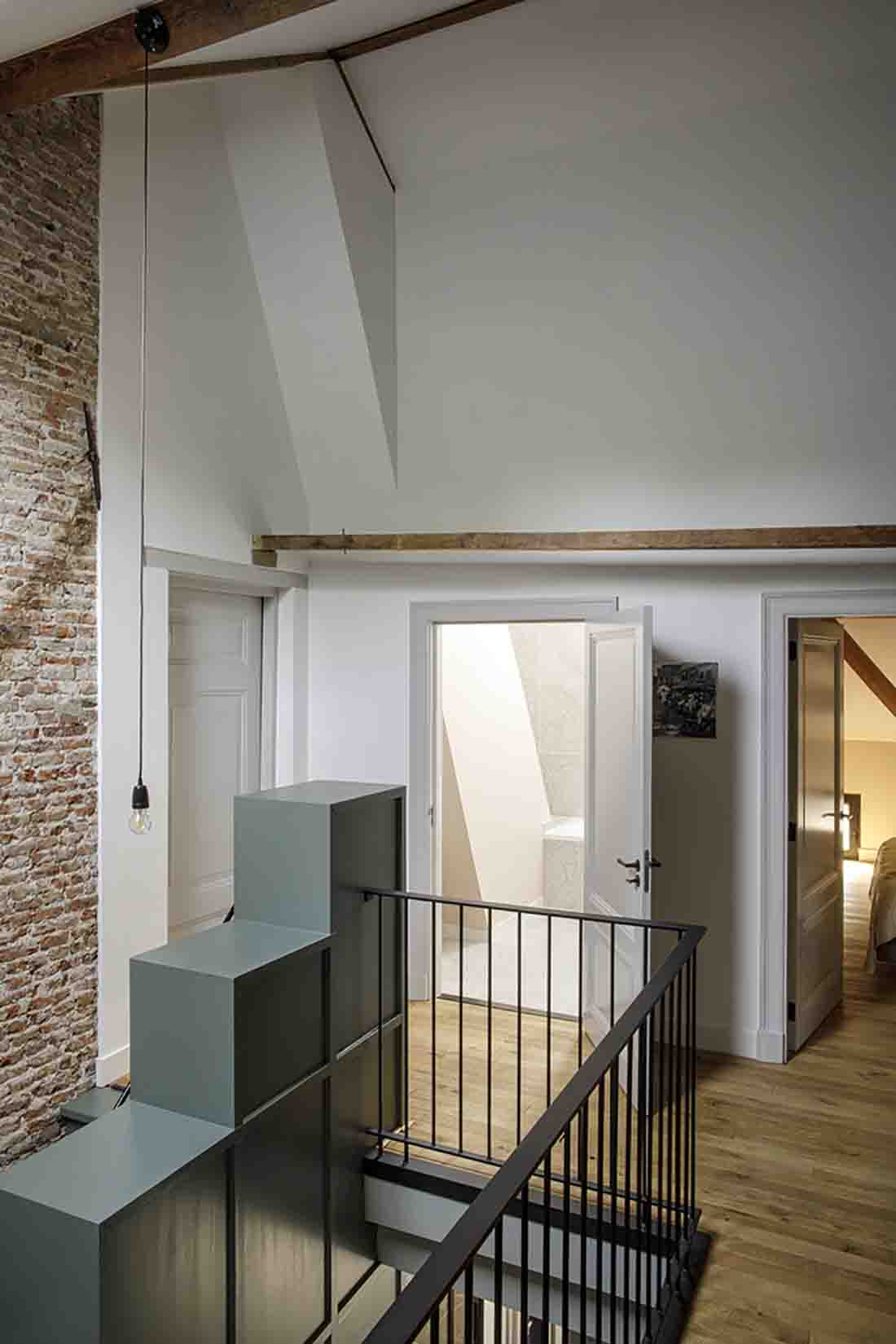 大型楼梯元件和独立式卡式盒元件的定制为房间增添了现代感和动感。为了产生更多的光线并优化路线,后立面的砖砌开口被打开并装有玻璃前面板。立面上存在的元素是设计的基础。建筑物历史的痕迹成为新层的一部分。