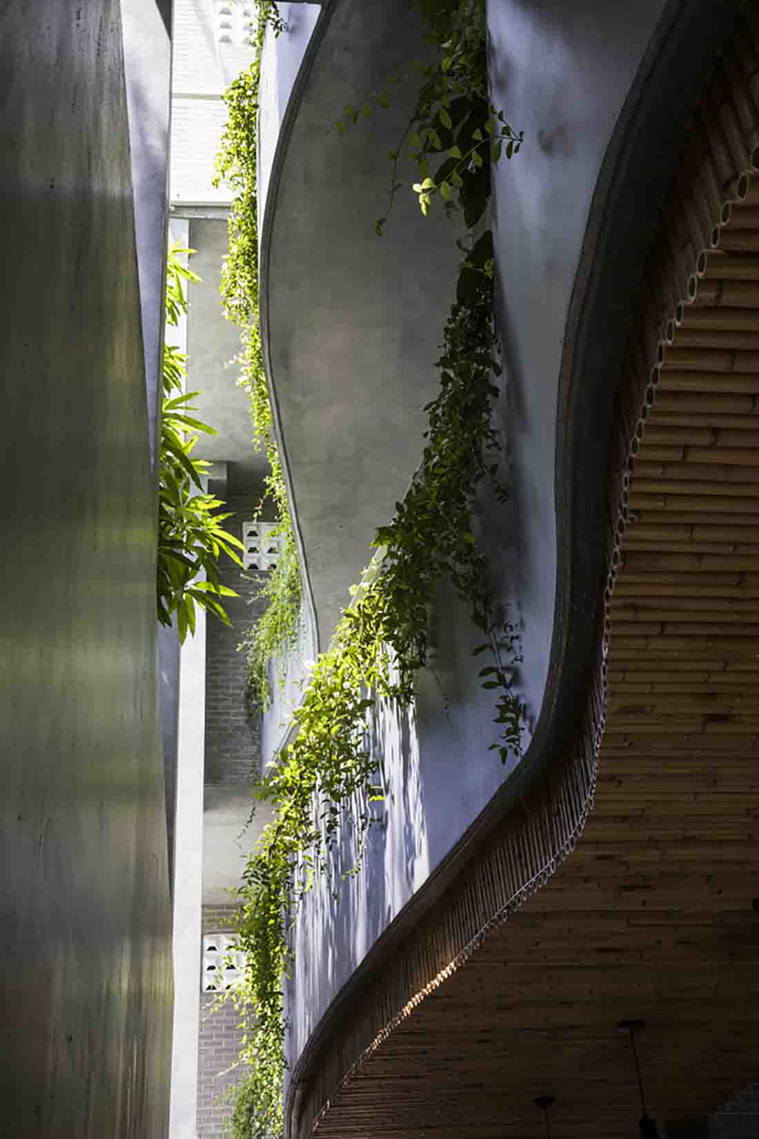 建筑所用的材料是环保的未烧砖。砖的纹理给人温暖的感觉,也象征了越南简单的乡村生活。