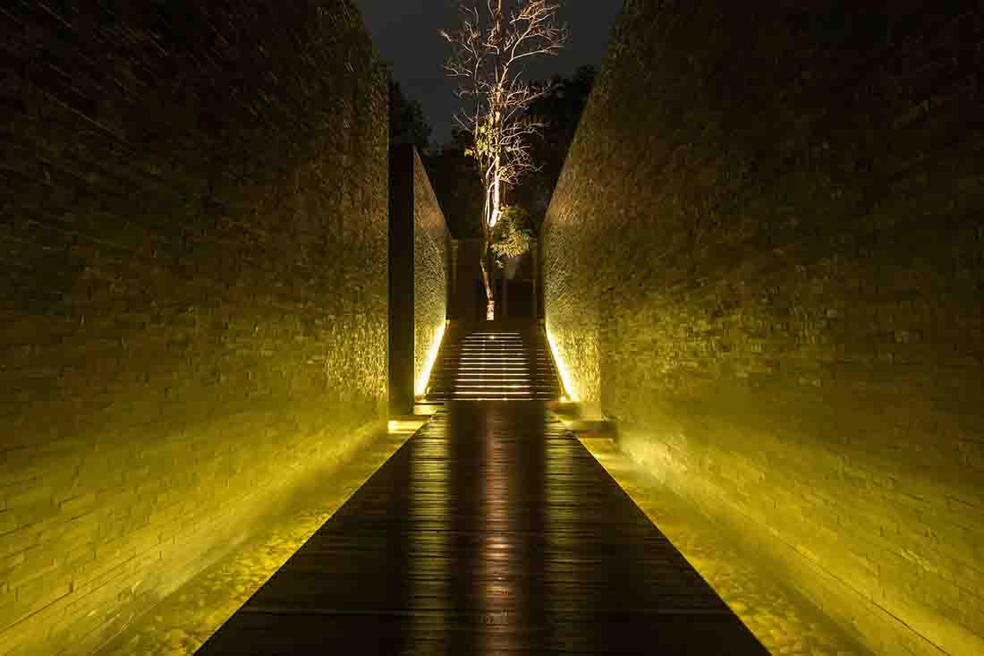 第二个挑战是酒店的业主想要维持现有的景观,有将近一百棵树散布在基地周围,需要进行保护。在进行概念设计之前,设计团队对秘密之章(酒店的一个节点)的几项总体规划方案进行了测试,目的是使田园式的建筑与现有景观相融合,同时测试项目的可行性。设计团队已经预见到这种理想的情况会造成施工困难,影响项目的可实施性。