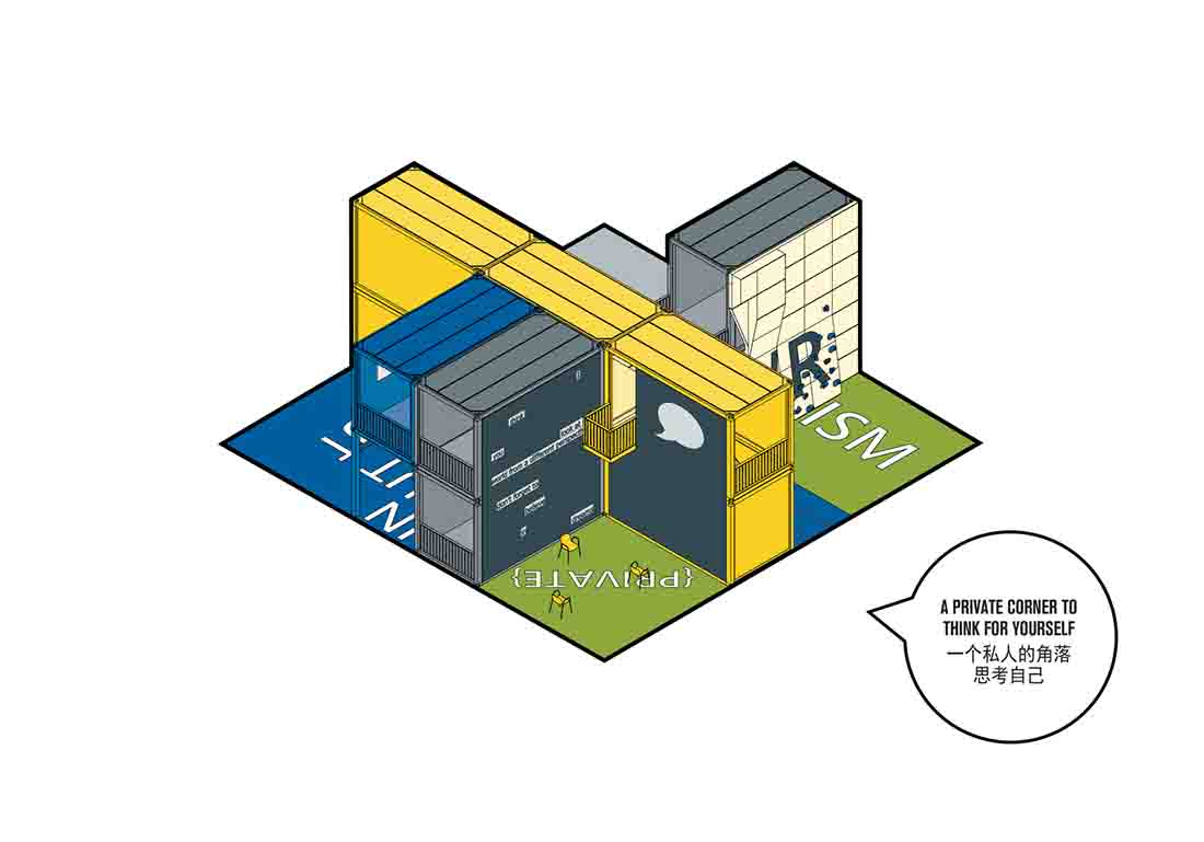 3. 私密天地:提供一个私人空间,作为独立学习,亦或是作为小组讨论的可能性,允深入思考所需的片刻宁静。在同一空间同时或是即兴发生。