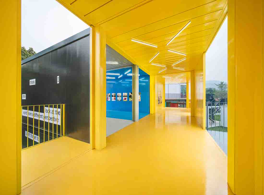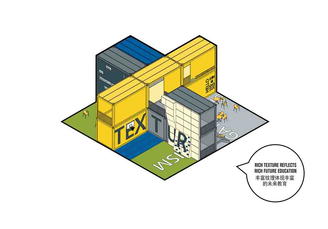 4. 丰富材质:通过喷涂,弱化标准预制模块的冰冷感,丰富绚烂的色彩选择,配合孩子们奔放自由的想象力,极大地拓展天性,让活泼贯穿整个学习过程。