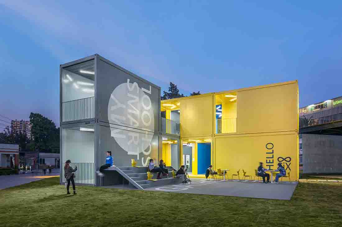这个模块化的营地建筑由12个箱式房打包箱(以下简称箱式单元)组成,被认为是未来学校的大胆探索,未来教育必将随着社会关系而变革。未来学校是在社会中广泛场所发生,而装配式运用正好提供了强有力的技术支持。