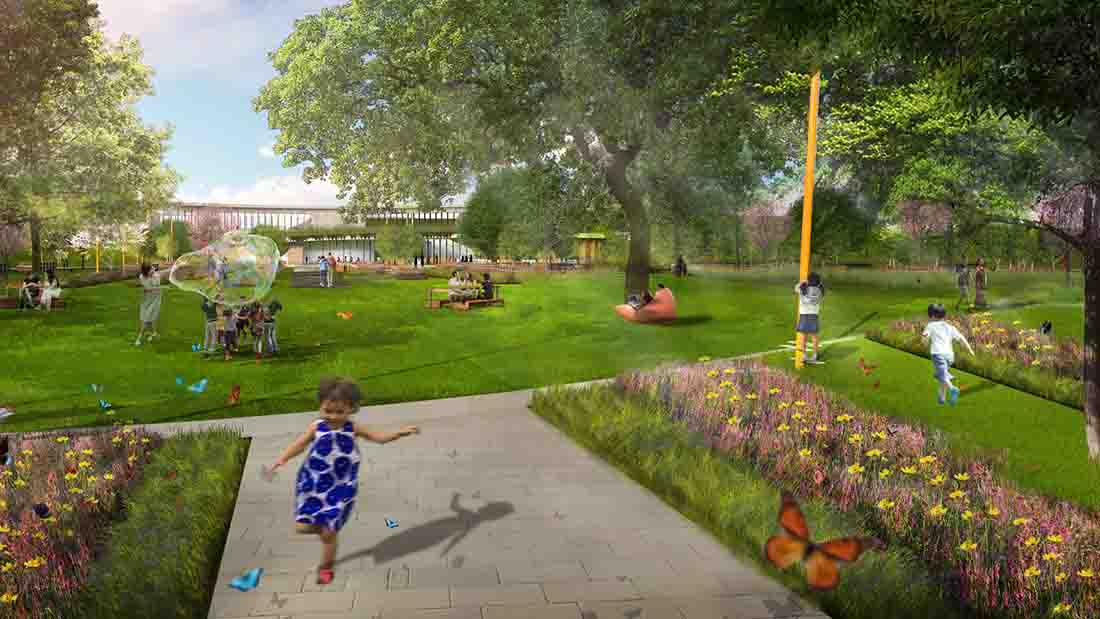 设计师将四座沉浸在景观中的新建筑,组成为公园游客创造无缝的外部和内部体验。儿童博物馆建于两座山丘之间,是公园的主要机构,将提供该景点的屋顶景观。在高18英尺的人行道中,这些建筑物设有超大的顶篷,可为人们提供玩耍和学习周围景观的空间。