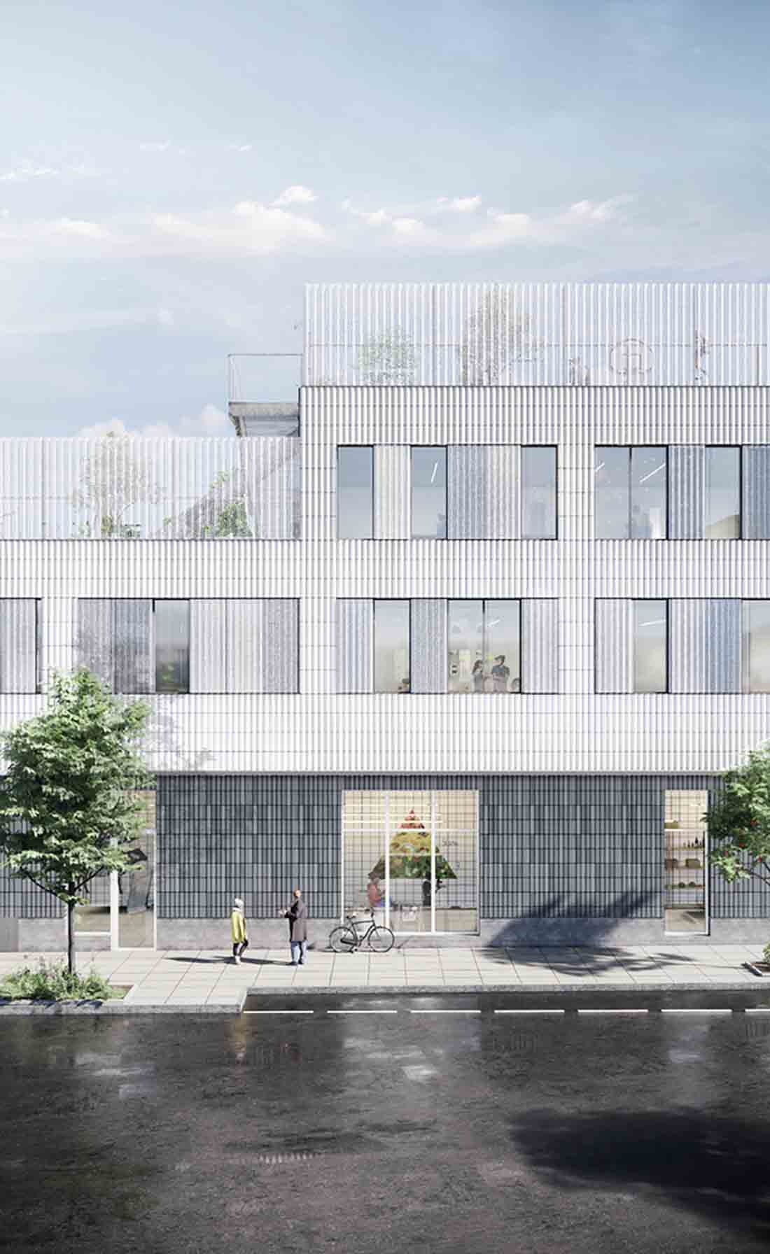 哥本哈根的肉类包装区以其肉类生产历史而闻名,其白色现代建筑风格引人注目,这种风格在该地区的餐厅和夜生活场所中大量使用。新学校的设计旨在作为独特地区的现代化补充,同时尊重并保持其某些特色。学校将坐落在地块的一角,将曾经进入过肉包装区时曾经使用过的那扇大门封闭起来。