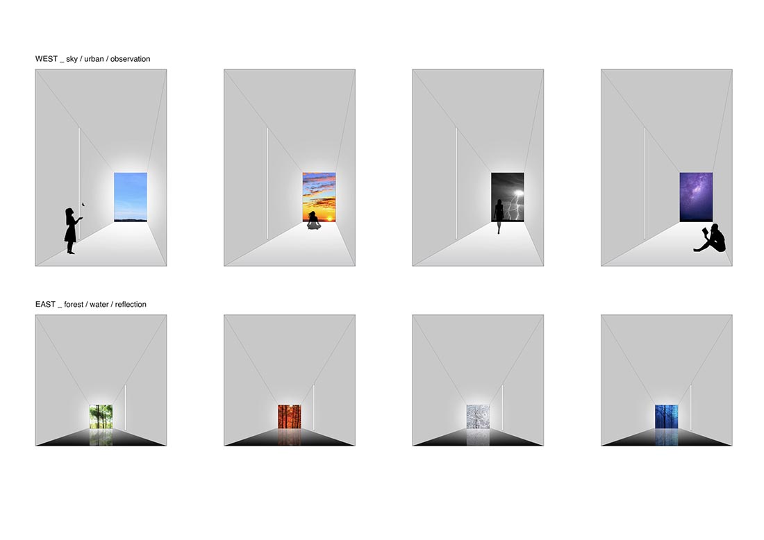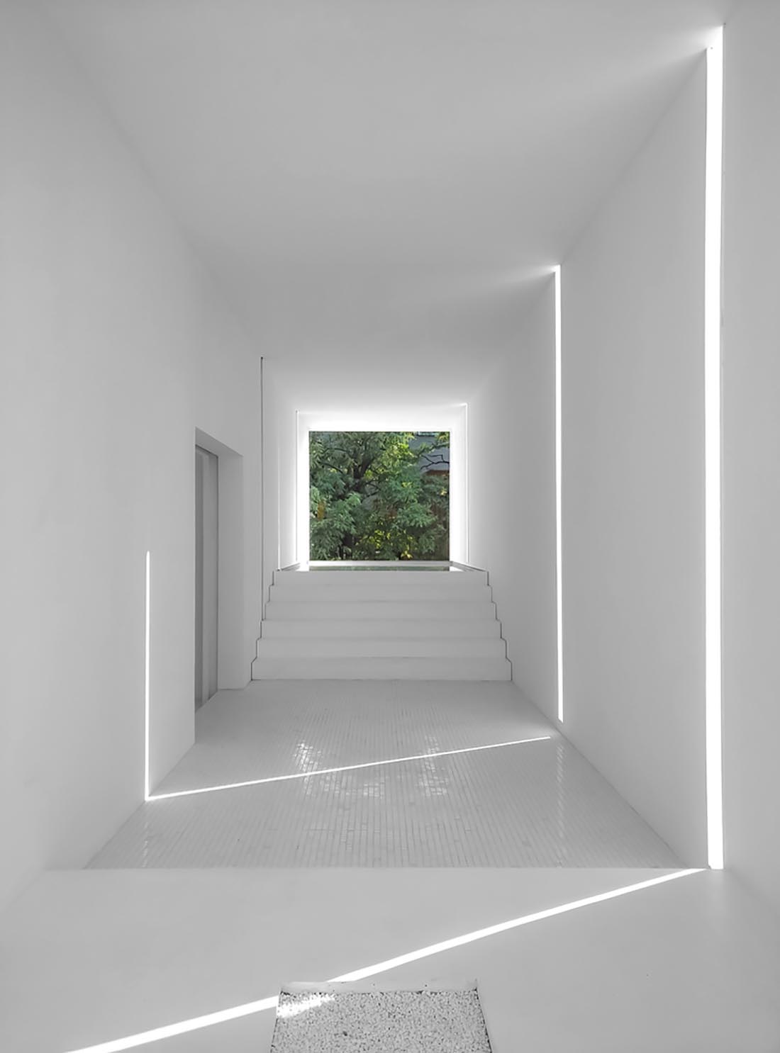 甚至,这种独特的自然氛围还会将每一刻的变化呈现在空间的内部。其内的住户在感知到这些多样光环境变化的时候,就有可能从日常的纷纷扰扰中脱离出来,进入一种冥想的思维状态。这样的一种大脑放空的状态,也将从空间的内部向外延伸,与外侧的世界紧密相连。
