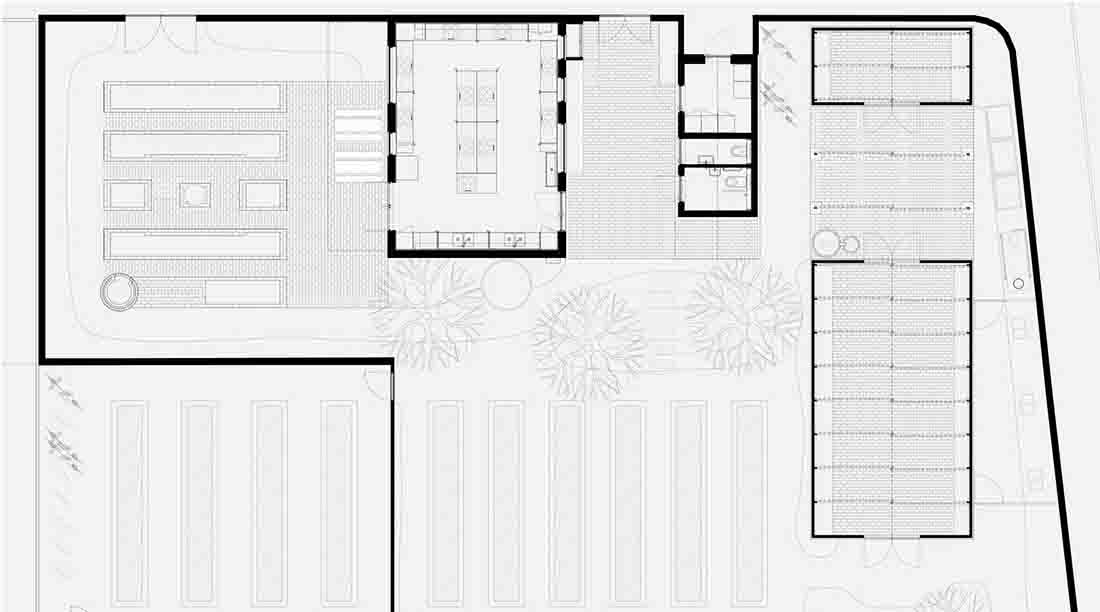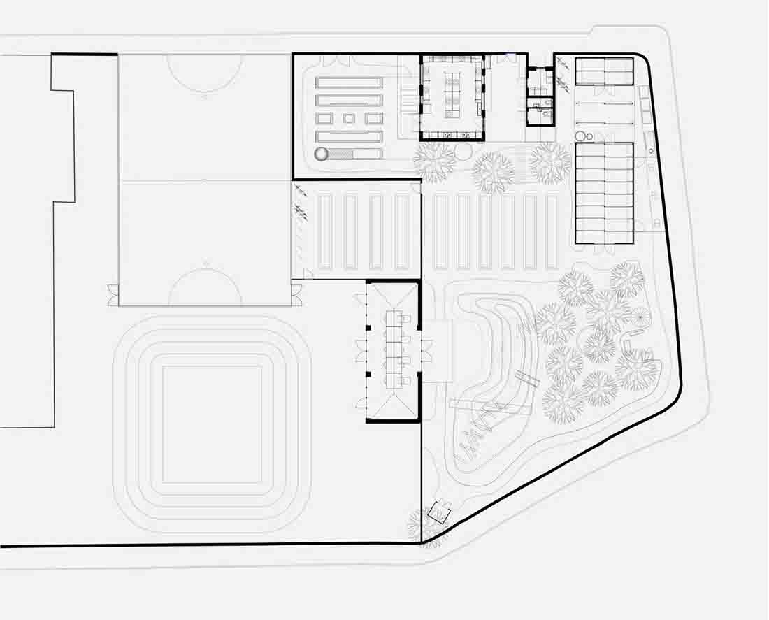 该方案包括一个室内厨房和周围的菜园,位于曼德维尔小学街角处一块显眼但并未被充分利用的场地上。在预算紧张的情况下,该方案采用耐用、简洁且有趣的设计,并通过改造现有建筑来减少施工过程中的碳排放。