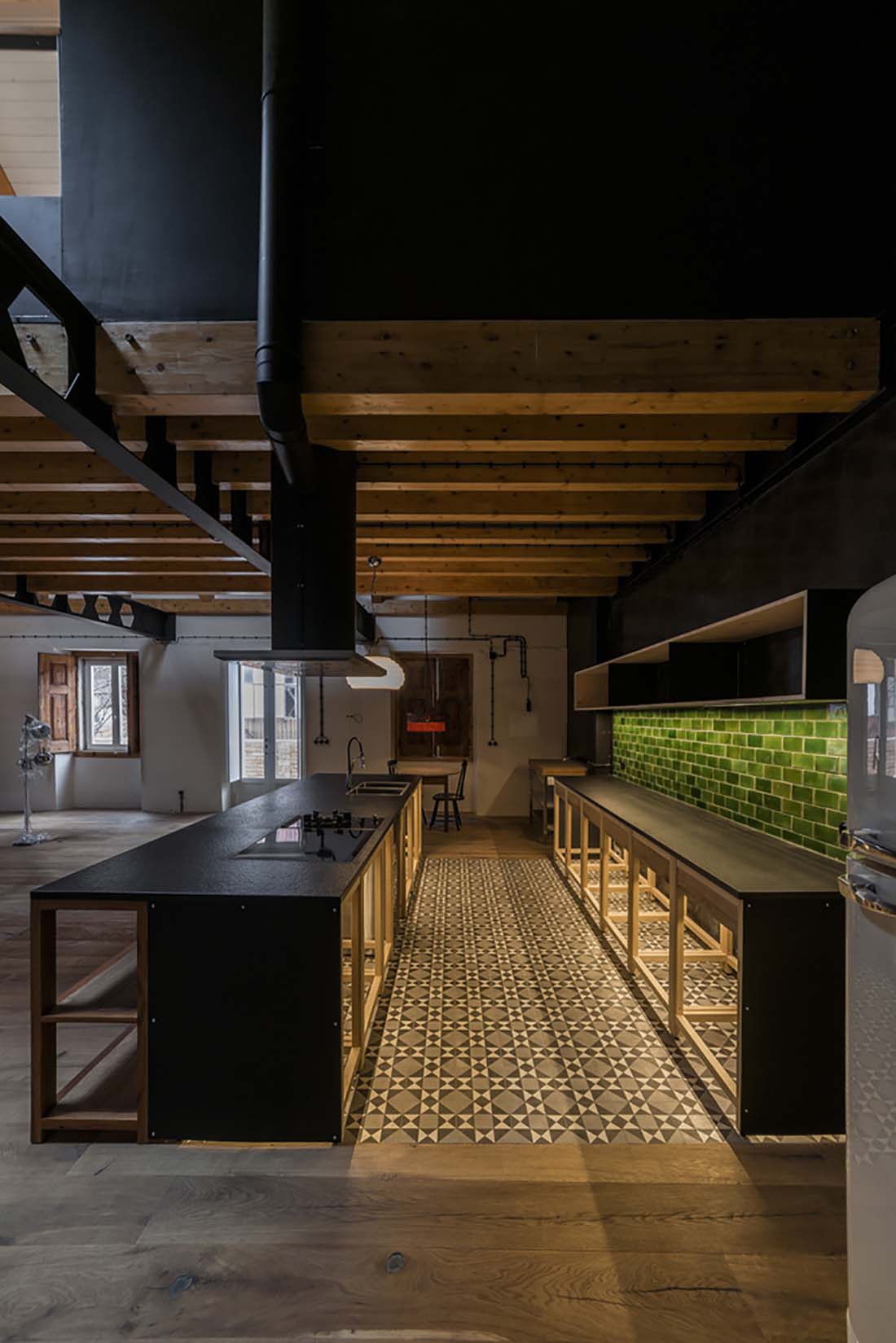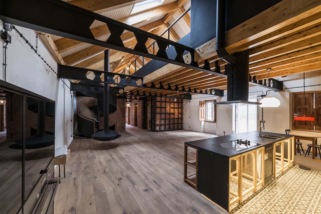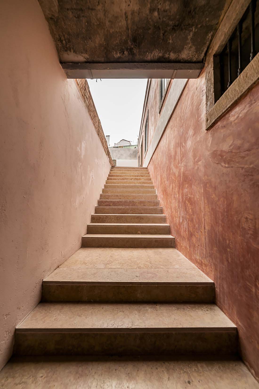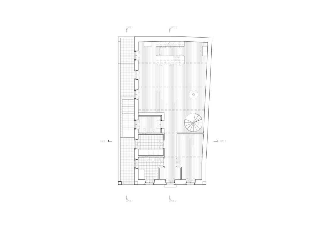 干预是在一栋两层楼的建筑中,其中一楼是以前的葡萄酒仓库,楼上是两间公寓。现有结构的严重破旧状态导致必须彻底拆除内部和屋顶。
