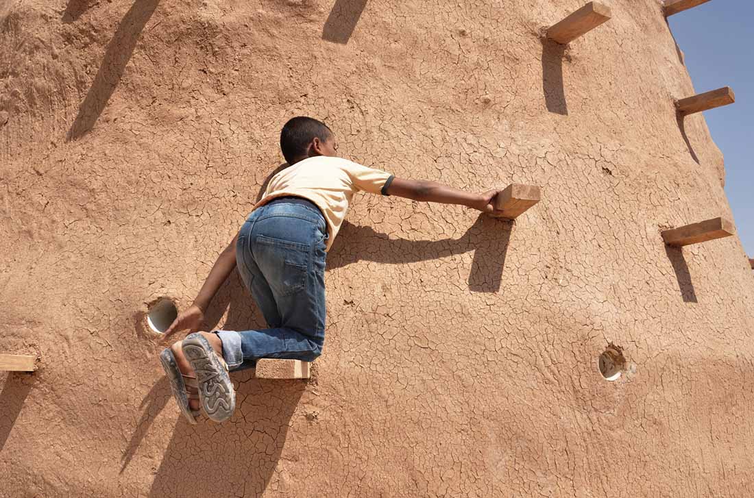 教室是使用所谓的“超级土坯”技术建造而成,其灵感来自于 Djenné 大清真寺,马里传统建筑风格以及起源于Aleppo 和 Homs 的叙利亚式蜂巢结构。而许多难民恰恰来自于这两个地方。
