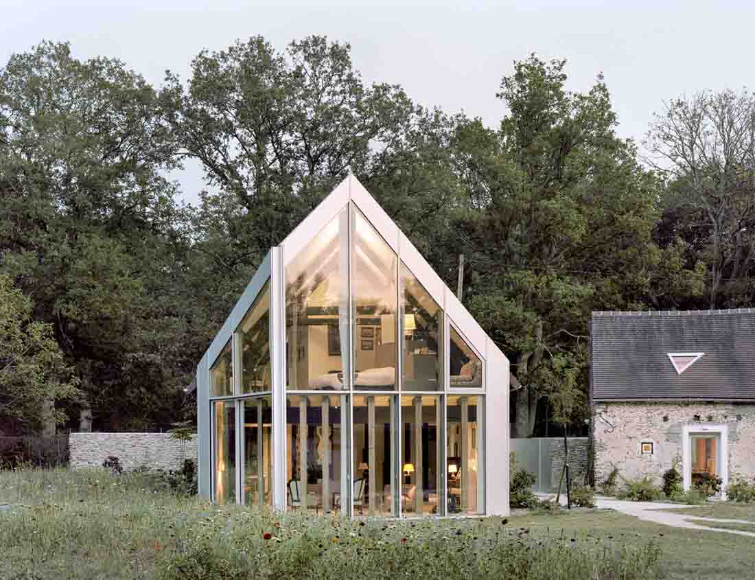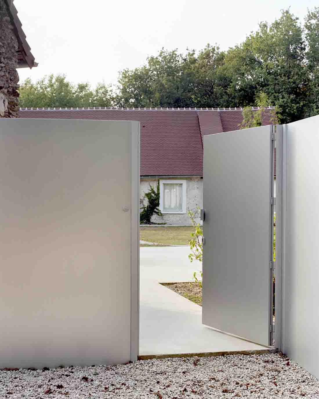 设计师将巴黎附近的les Yvelines的3栋农舍改建、翻新和扩建,为当代艺术收藏家提供了新的住所和项目空间。由草地和森林组成的庄园占地25公顷,但建筑物仅面向一个小型中央庭院。