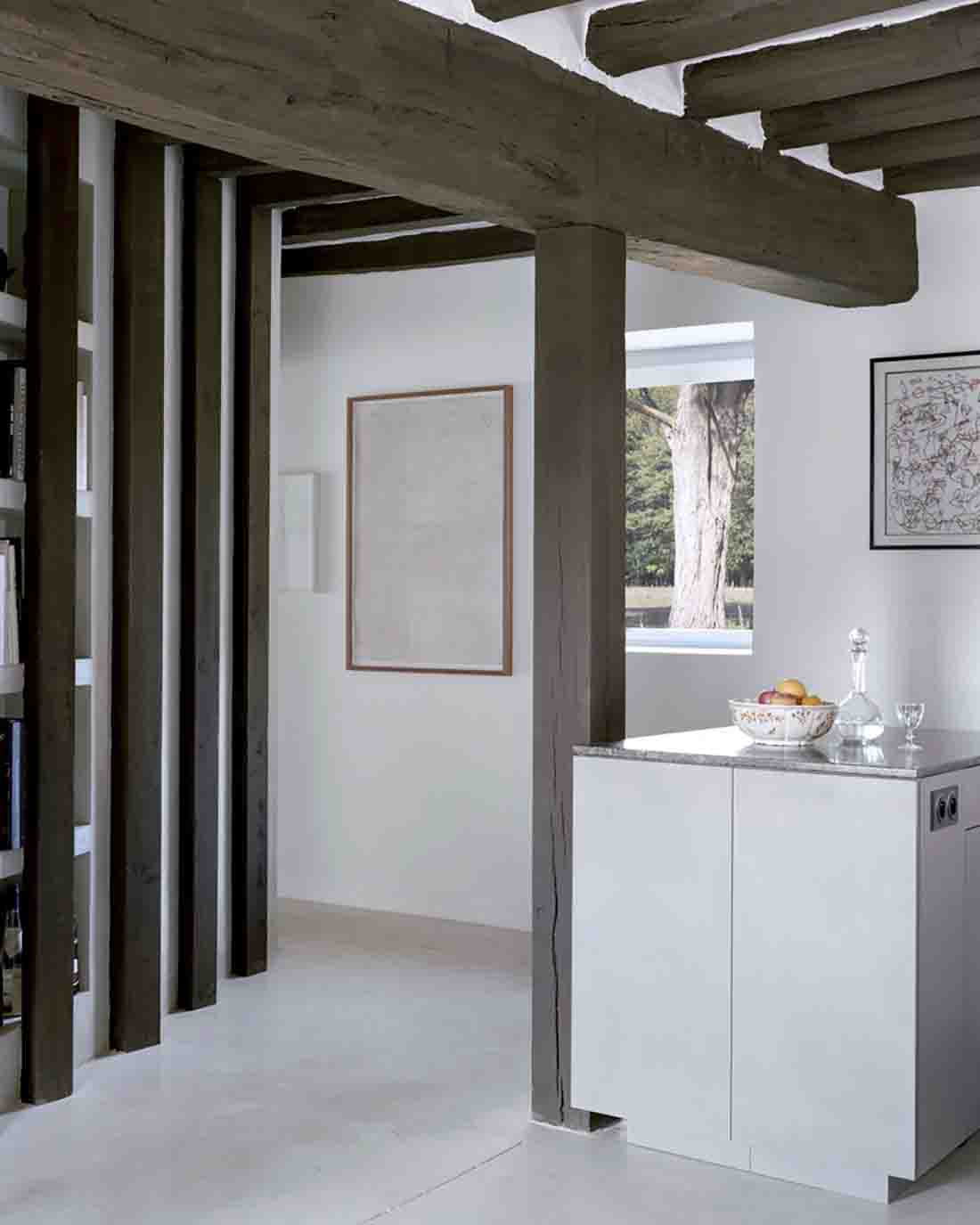 通过操作,现有的乡土材料(石头,橡木和赤陶砖)在这些空隙周围伸展:梁变成圆柱,屋顶变成墙壁,天花板变成隔板,底层变成二楼。横跨房屋之间的连续米色混凝土地板按照相同的外部样式打孔,缠绕露台和森林边缘。