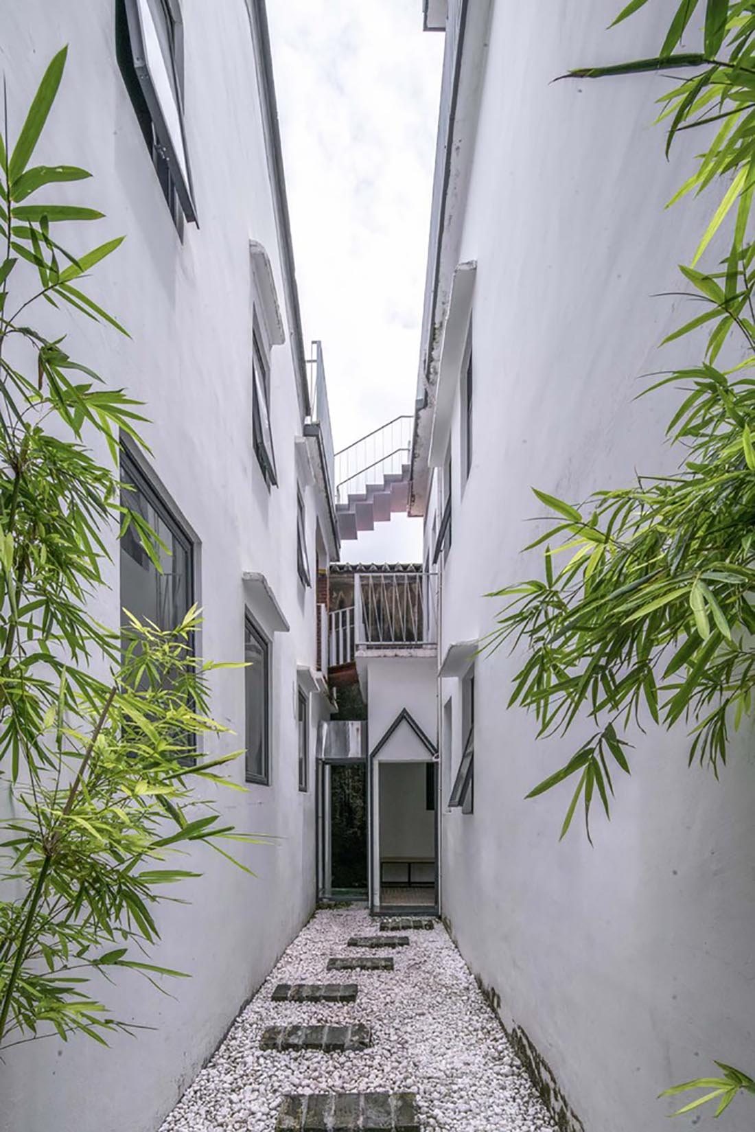 设计师利用相邻四栋被租赁下来的房子,打破房子间的围墙、众筹一个公共空间——将四栋房子的院子,附属空间,过道空间,露台空间等原属于单个房子内部的公共空间全部集合到一起,梳理出一个属于大家的能适应新的使用功能的公共空间体系,以解决整个白房子民宿社区缺乏公共活动空间的难题,众筹一个社区活动中心。