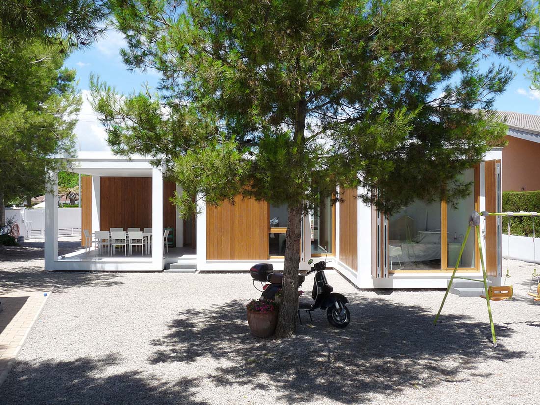 该项目位于巴伦西亚附近的居民区,包括分五个阶段建造房屋,以确保从临时房屋向最终房屋的演进。该策略是利用该地块的所有可用空间,并获得通用的建筑和景观图像,其框架适应于先前存在的房屋。