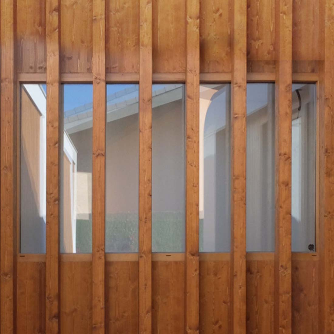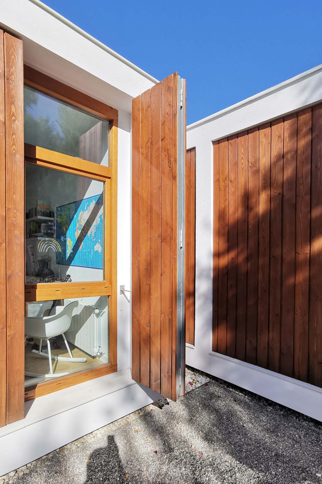 为了确保其适应性,该项目旨在与现有预制房屋的模块配合使用。这样,将有可能在不久的将来替换预制房屋的位置,然后将其永久替换。外墙上结构的强烈形象证明了这种模块化性。