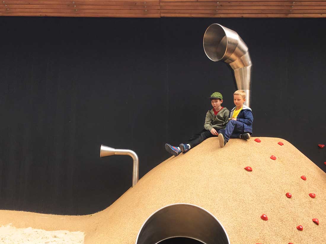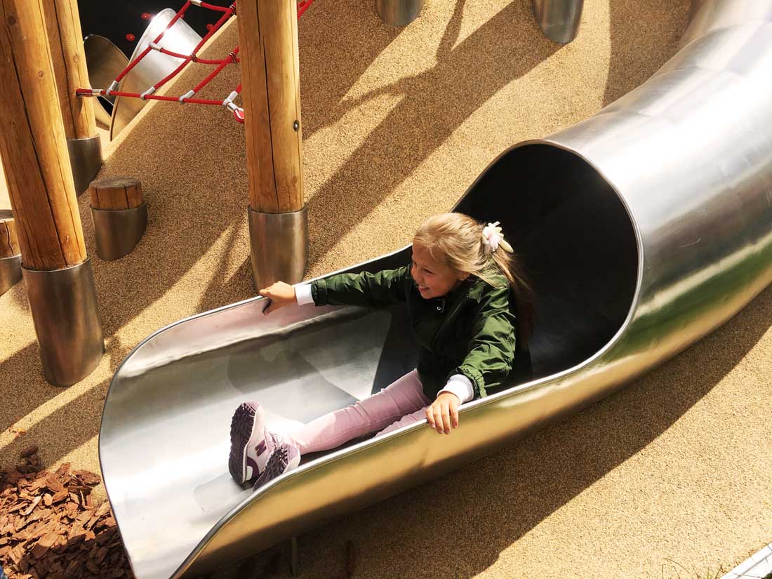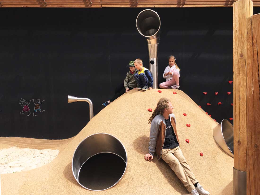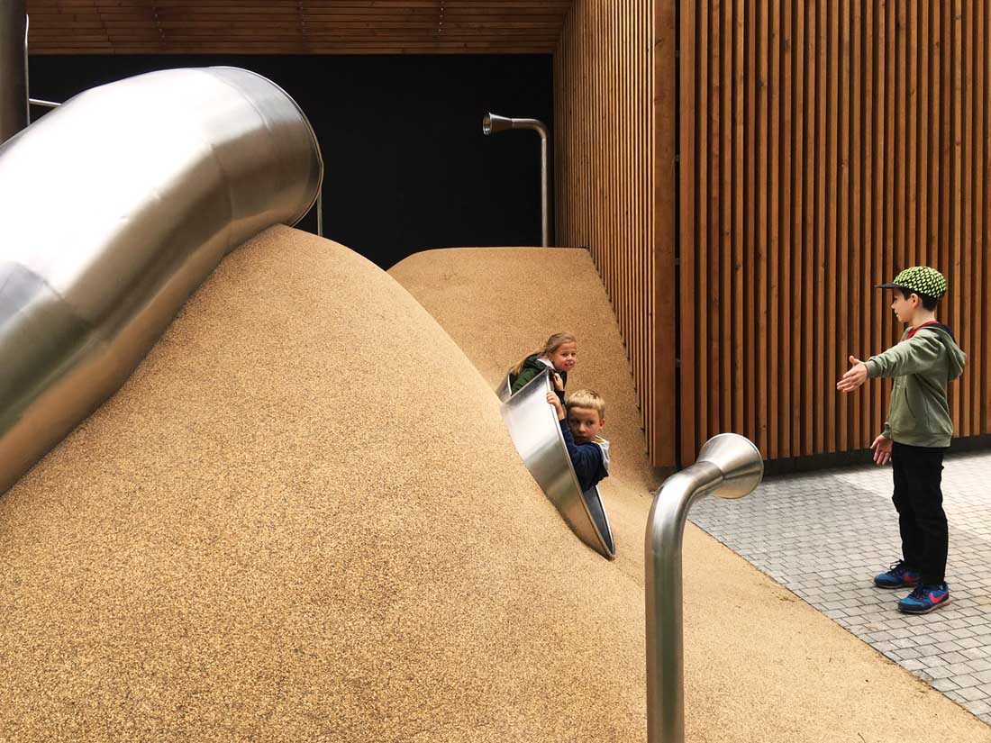 在每个游乐场上,都必须有机会改变空间并移动零件。不同类型的颗粒材料,植物,水,粉笔表面,内部空间——儿童可以留下自己的印记。
