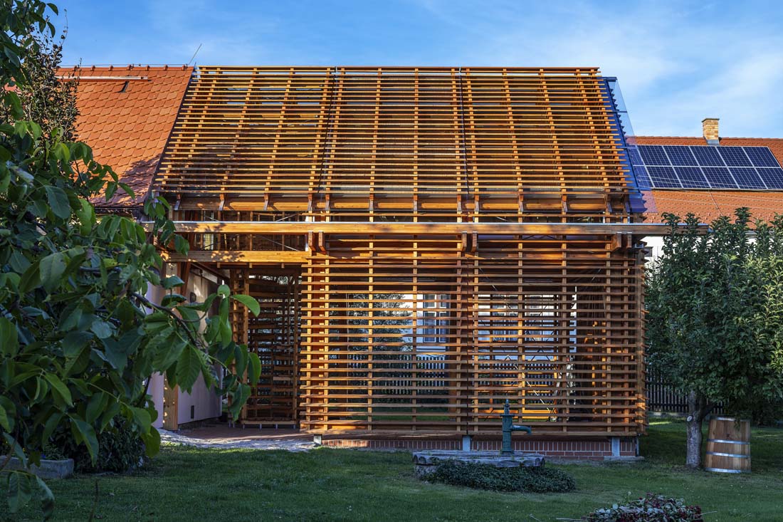 投资者希望扩建他在南波希米亚州的农舍,这是他可以休息和放松的地方。设计师用半透明的由云杉和落叶松木材制成的木结构扩展了建筑物的一个侧翼的体积。在形式的表达方面,扩展部分与原始农舍完全和谐。然而,就结构而言,透明的木构架及其禅宗氛围形成了鲜明的对比。