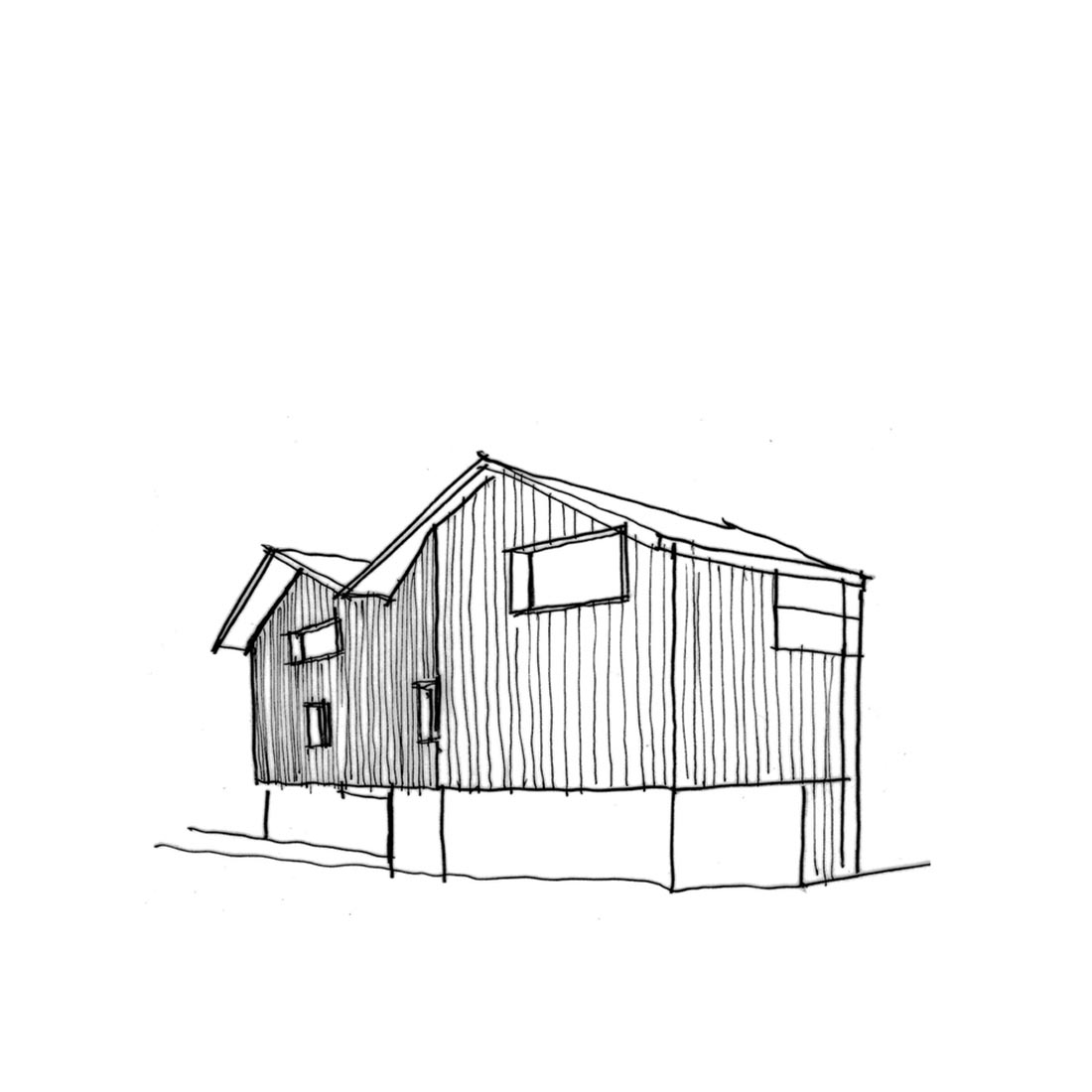 小屋特殊的立面设计完全遵循内部的空间功能。房间的每一处开窗和社交区域顶部的巨大窗户都朝向南侧,以更好地接收外侧的自然光照。