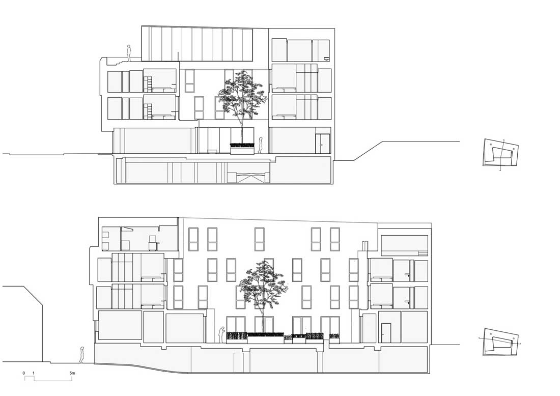 编后语:设计师将青旅插入由景观设计方案确定的环境中,以确保其与现有建筑遗产的融合。它看起来像是一个简单的石头砌成的体积,与地面分离,其立面在街道上弯曲。这座青旅在古老的街道里以一种全新的姿态进入历史新貌,让高端风与当地建筑历史融为一体。更多关于度假酒店设计、青旅设计、建筑设计的案例,请点击下面的拓展阅读进行跳转阅读。