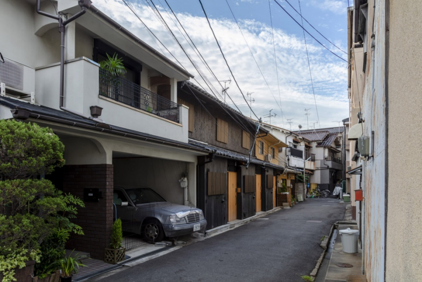 大阪城中有六栋建于1926年的长屋,建筑师将其中三栋改造成了私人出租屋。需要改造的三栋房屋都已经空置许久,多处损坏漏雨,十分破败;剩下的三栋长屋连成一排,已经做过翻新,都有居民居住。
