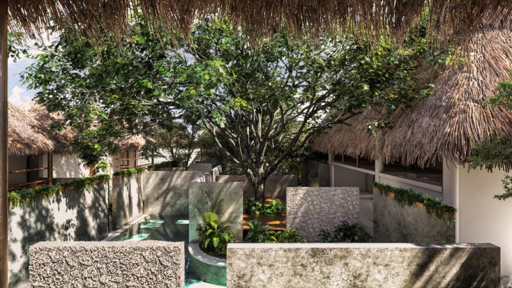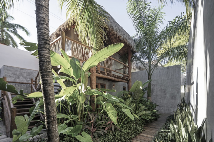房屋的室内设计体现了更高的概念:缺憾之美。其灵感来自摩洛哥,融合了手工艺美学,每件工艺品都具有独特的个性。这一概念还与日本侘寂美学有关,是贯穿Hormiga民宿设计的关键方面。民宿邀请客人自由地探索自我,使他们真正处在自我接纳的旅程中。按照同样的思路,设计团队与采取可持续公平交易方式的墨西哥工匠合作,应用瓦哈卡编织、瓜达拉哈拉家具、当地陶土、当地可持续木材、传统玛雅木工以及来自当地古董商的再生木材。民宿各处都有古董家具、门和物品,这些物品呈现出过去的品质,它们自然老化的美与Hormiga民宿的理念产生共鸣。