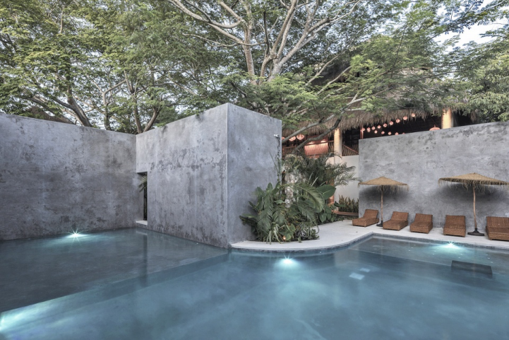 跟许多项目一样,Hormiga民宿如今的样貌跟一开始的概念大不相同。原业主将房屋打造成更为普遍的金塔纳罗奥风格,现业主Sofia和Jose对摩洛哥美学情有独钟,对房屋进行了彻底的改造。他们喜欢高墙、古老的门、手工元素和精美的简约风格,这影响了他们对Hormiga民宿的诉求,他们希望在民宿中融入梅里达和其他拉美城市的元素,例如西班牙殖民建筑、灰泥饰面厚墙、木制支撑梁、中央庭院以及精简装饰。