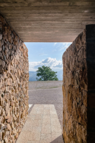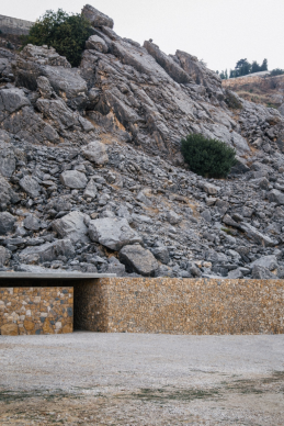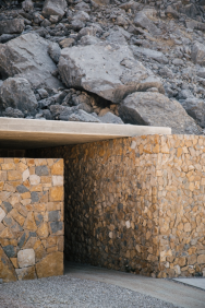 该项目位于黎巴嫩的巴木顿,基地周围是埋葬腓尼基人的千年岩石,它们经过几千年的风吹日晒,变成灰色和黄色,围绕整个基地。民宿坚硬的挡土墙映衬天然巨石,使人想起远古时代的建筑立面。