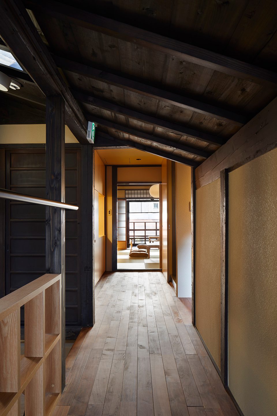 项目选址位于京都乌丸五条,房子本身已有100多年历史,为传统的木结构町屋,主体骨架良好,除了一些杂乱的私人加建。客户意将其改造成一个独特的高端精品民宿。原则上我们尽可能的去保留,同时也需要更新以满足现代的生活需求,自然而然的就产生了一个混血的新旧组合建筑。和一般纯住宿的民宿不同,我们还提供了小博物馆式的文化展示体验空间,所以取名合庭。