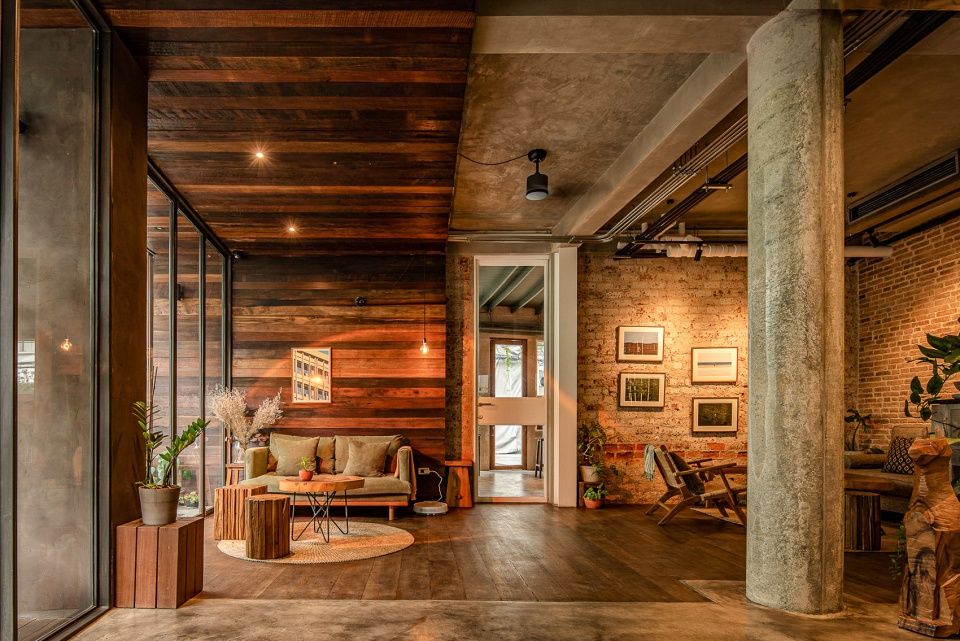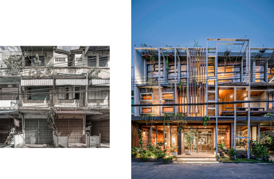 TAMNI旅舍所在的场地上原本坐落着几间超过60年历史的旧店屋,包含22个住宅单元。频繁的使用和不标准的建造让既有建筑逐渐变得破败。店屋的主人世代居住在这里,地块前方道路的名称便是以其家庭姓氏命名。开发该地块的最初目的并非是为了商业经营,而是为了给社区和环境带来良好变化,并为居住在这里和附近地区的人——尤其是长久以来生活在这里的业主——创造更加幸福的生活。