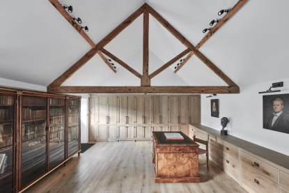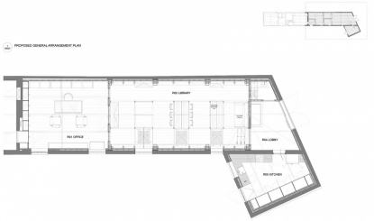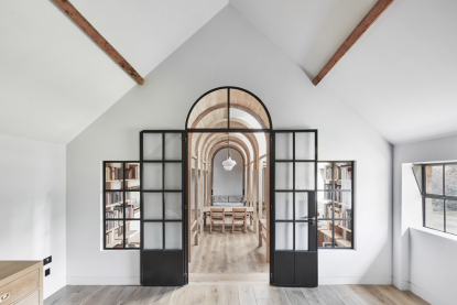 项目的设计方Crawshaw建筑事务所树立了一个雄心勃勃的目标,致力于为这栋不受欢迎的建筑赋予惊人的吸引力,并将以前狭窄幽暗的农场建筑改造成通透明亮的图书馆与办公空间,除了用于收藏私人书籍外,还将保存并展出一系列关于帕拉第亚建筑的部分史料章节。虽然建筑的室内空间注定了被改造的命运,但是设计师认为建筑的原始功能应该成为整个项目叙事线索中的一部分。
