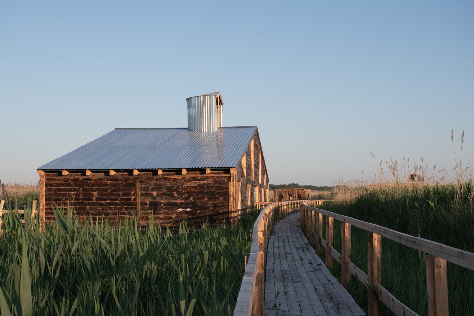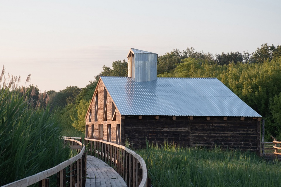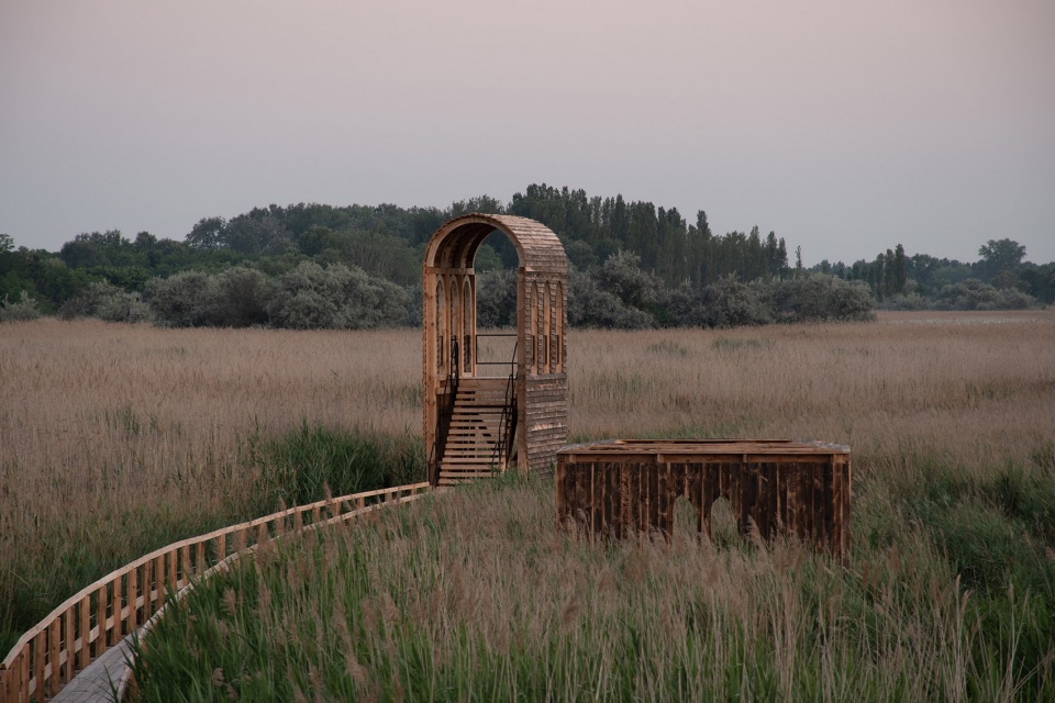 布达佩斯的Paradigma Ariadné建筑工作室应Sándorfalva市的邀请,为当地乡村设计一座水牛谷仓以及一条通往自然保护区的教育步道,在落成一段时间后,这些建筑装置如今已被茂盛的芦苇丛覆盖,风景美不胜收。
