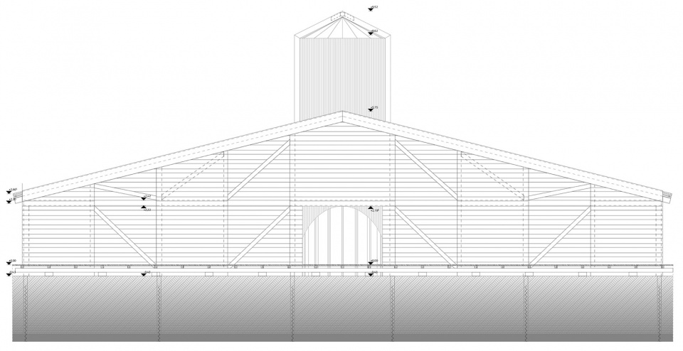 从概念上讲,设计旨在诠释对东欧历史时期的农业建筑景观的理解。项目中共包含一栋谷仓建筑以及四处景观装置,每种建筑中都包含了大大小小的简单几何形状,在景观中创造出自身独特的性格。这些乡村建筑是有近百年历史的地区建筑以及当代工业化技术的结合体,这种结合有时会带来一种几乎天真的视觉冲击力。