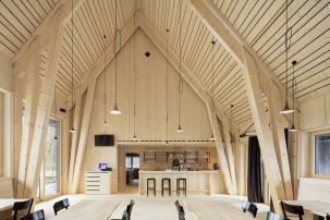这栋充满诗意的建筑是基于对场地的清晰认识而设计,这是源于建筑师会针对场地的历史和可能的参照物进行认真分析。建筑设计重要的不仅仅是形式还有建造材料的选择,Iso Huonder所选用的材料都是天然材料,并且与建筑结构相关。建筑师会对场地中可能发生的情景进行构想,从而来运用这些建筑材料,通过设想人们怎样相见、互动还有与周围景观的呼应来创造空间。