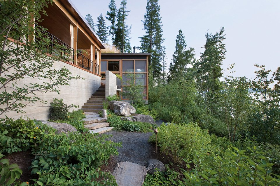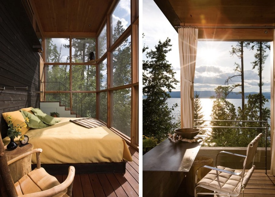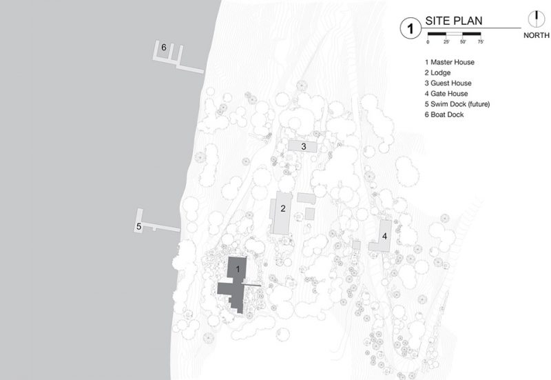 这几座建筑共同带来了宛如洞穴的温暖空间以及宽敞的门廊,沉浸在美景与阳光之中。小尺寸的窗户和厚实的墙壁朝向山坡,与临湖的主立面形成对比。居住者可以通过打开的滑动墙壁随时享受户外的风景,而无需走到遥远的荒野地带。同样地,每个卧室内也拥有独立的隔墙,使人可以安心地在大自然的环绕下入眠。