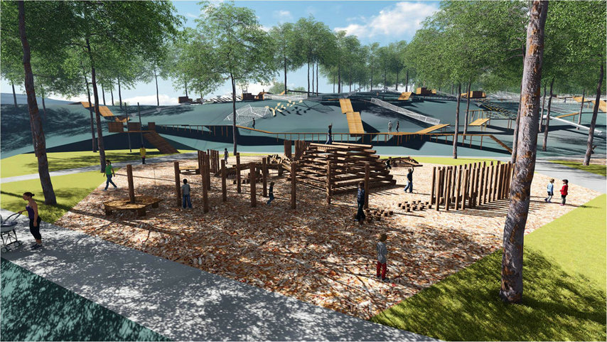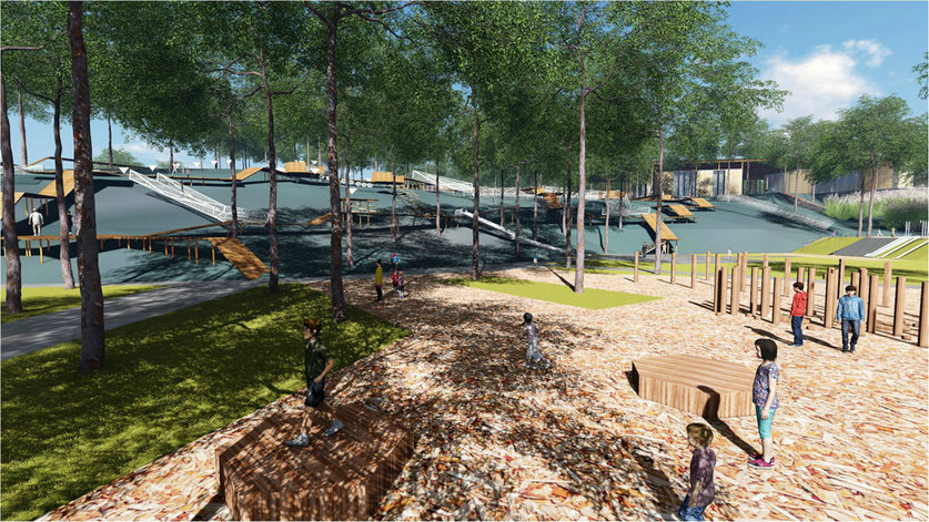 拓展活动区集中在营地东北侧,利用坡地、台地和河滩的现状地形组织各种室外项目,开展的动植物地质科普教育、体能拓展训练、野外生存基本知识以及野炊、露营等自然野外体验活动。通过学生集体旅行、集中食宿的方式走进大自然,满足不同年龄段青少年的体能培训需要,也是企业进行团体拓展的场所。台地露营区还能够举办营地篝火晚会、露天音乐会等大型活动。
