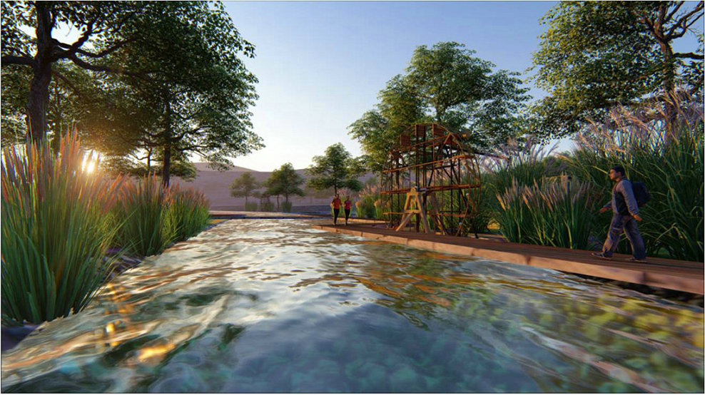 现状谷地梯田是农耕教育的天然场所,基地南侧具有充足耕作环境,利用田地分割、耕作种类及高差等操作手法,创造不同的田园景观分区,配合生态体验等活动,提高耕作田地的经济价值