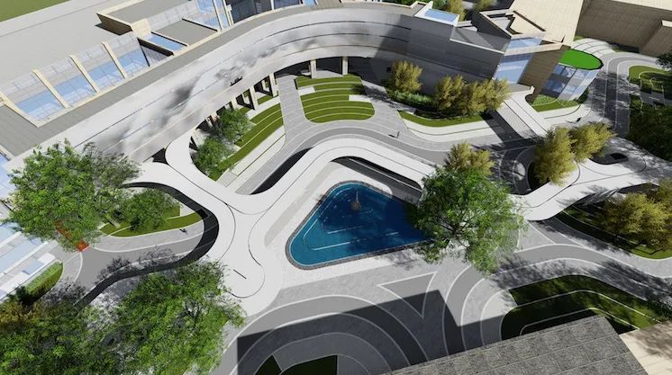 休闲娱乐空间 :作为政府的前广场 ,本身并不需要太多的休闲娱乐功能,但是考虑到区域内一部分办公人群的需要,我们开辟了两个小的休闲空间。分别位于7号楼南侧的廊下,以及6号楼北侧的现状绿地内,可以供人短暂停留休息和交流。