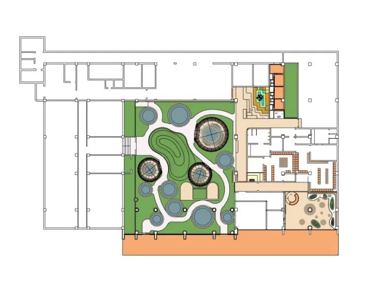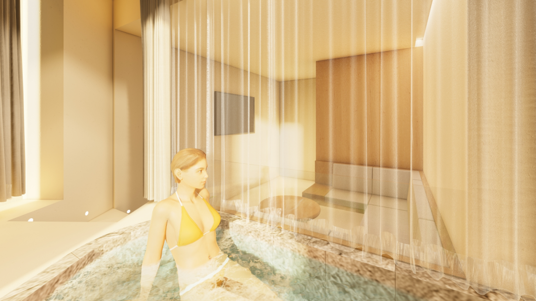 在温泉酒店的设计中,最大的特色之一就是对温泉空间的设计上。温泉包括:室外温泉、屋顶温泉、室内中庭温泉、室内儿童泡池、室内客房私密温泉、当地特色温泉。
