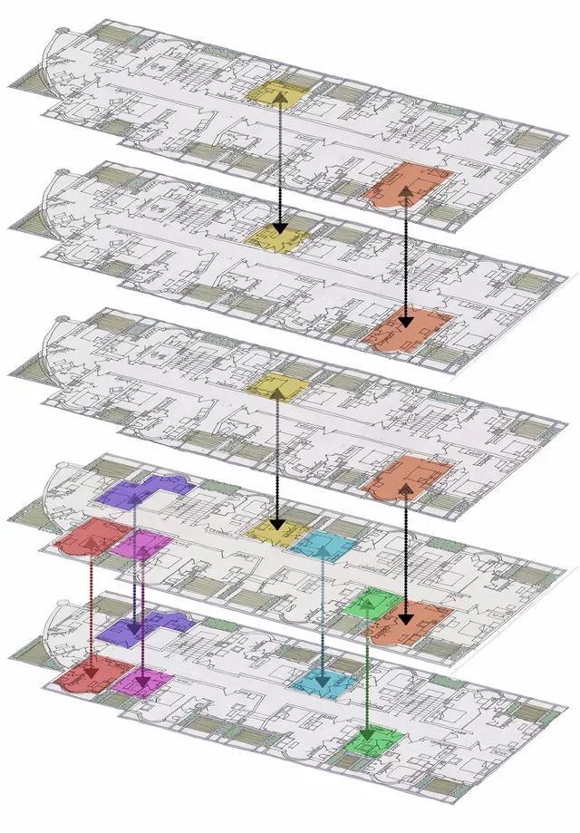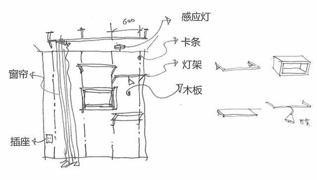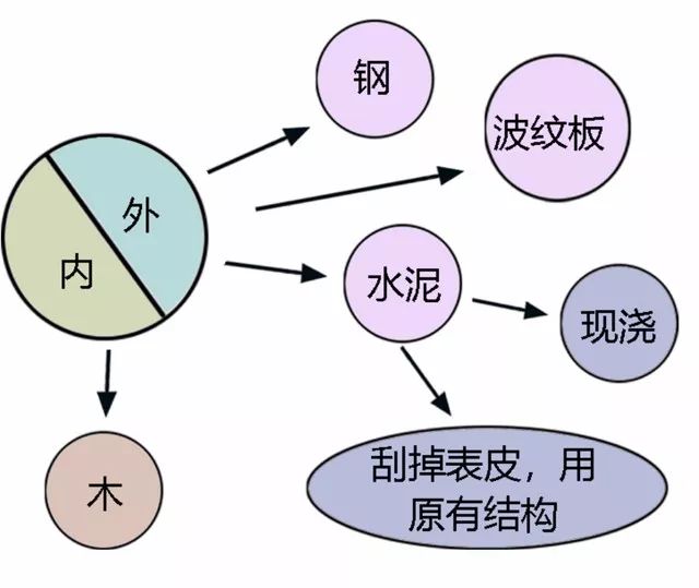 内部环境改造思路示意:走廊作曲折变化,打开墙体,加自然元素引入室内